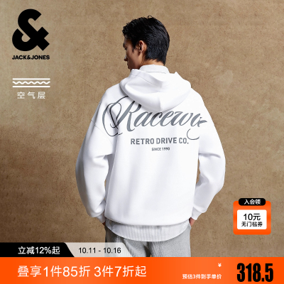 杰克琼斯男装卫衣2025年冬新款时尚印花宽松连帽长袖上衣