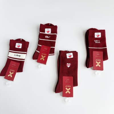 西客优品字母组合本命年鸿运袜女士秋冬中筒袜舒适透气红袜子2969
