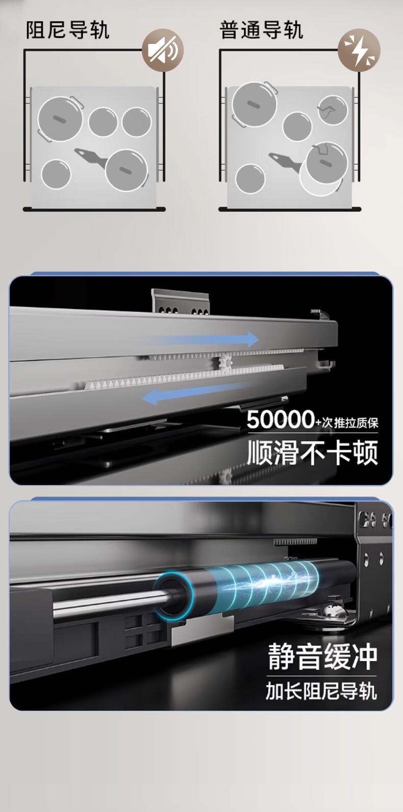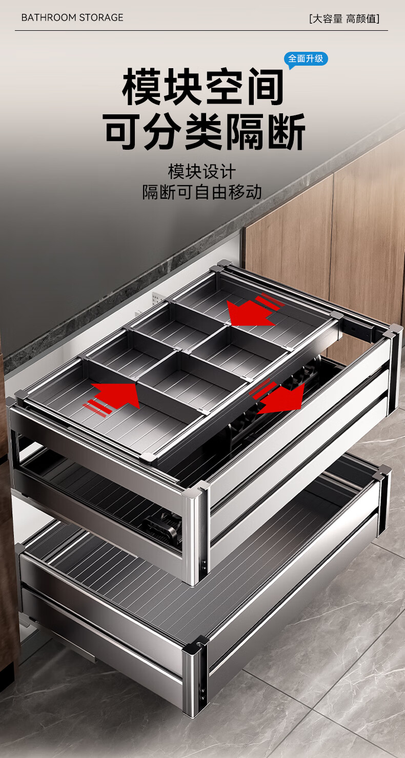 百悍厨房拉篮橱柜抽屉式碗篮碗碟架调料加深双层拉篮304不锈钢锅碗架