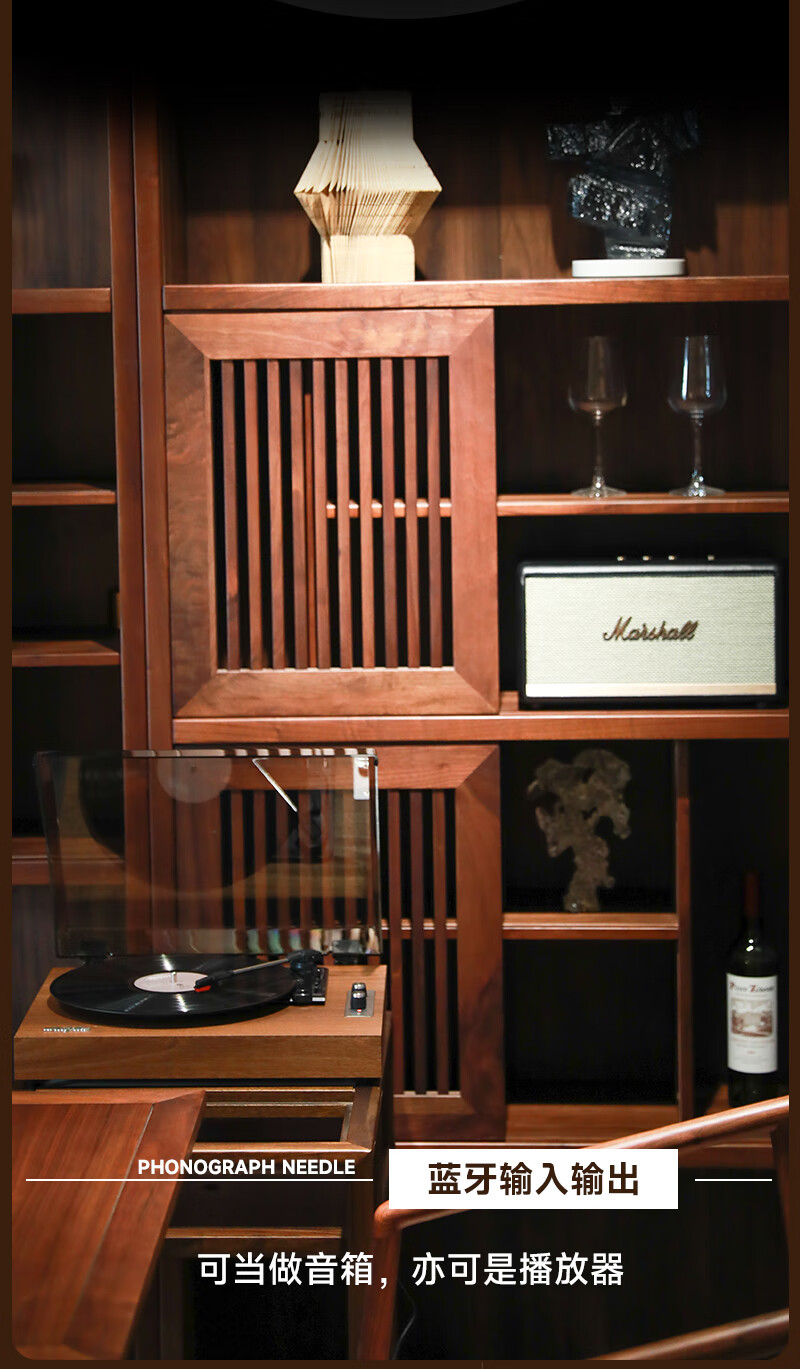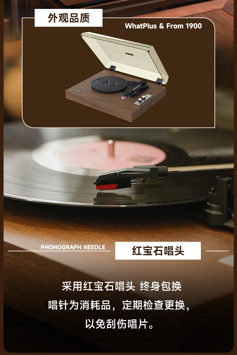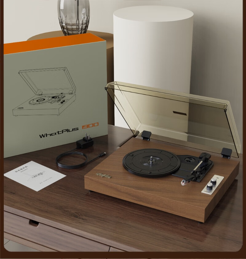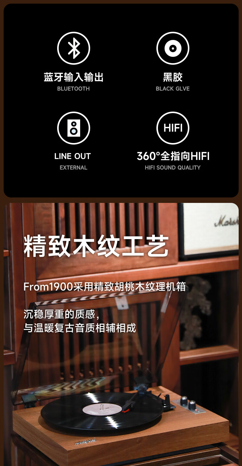 问加WHATPLUSFrom1900黑胶唱片机复古 蓝牙音响一体式唱片机 生日礼物 高端留声机 客厅音响 胶片唱机 胡桃木