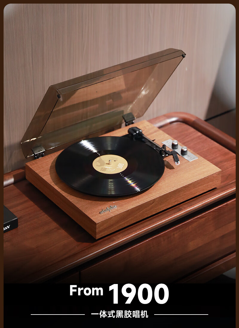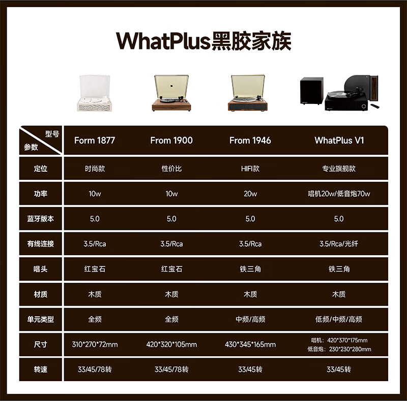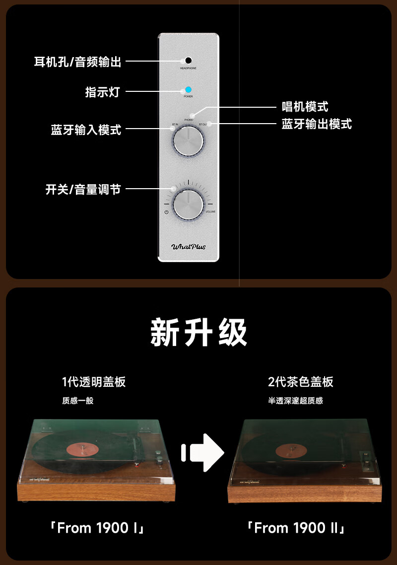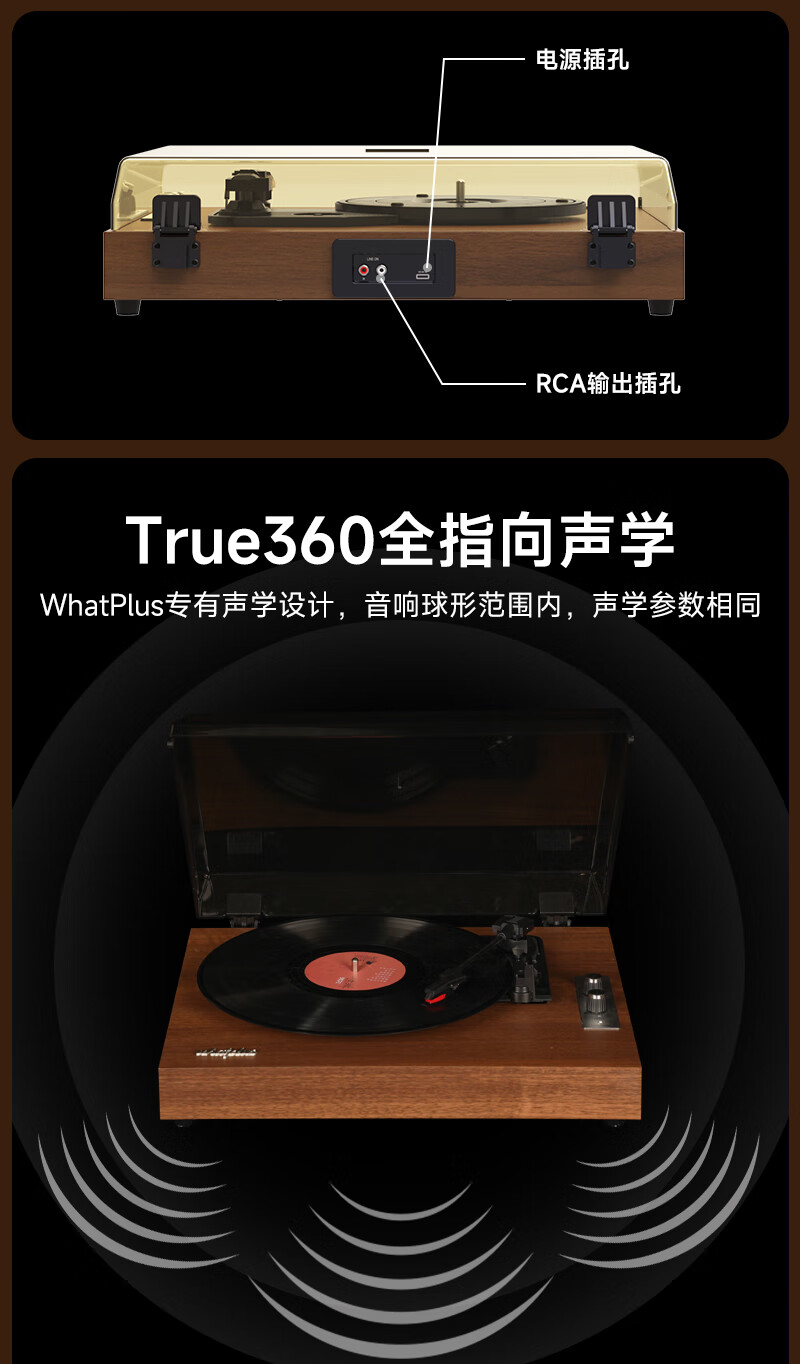 问加WHATPLUSFrom1900黑胶唱片机复古 蓝牙音响一体式唱片机 生日礼物 高端留声机 客厅音响 胶片唱机 胡桃木