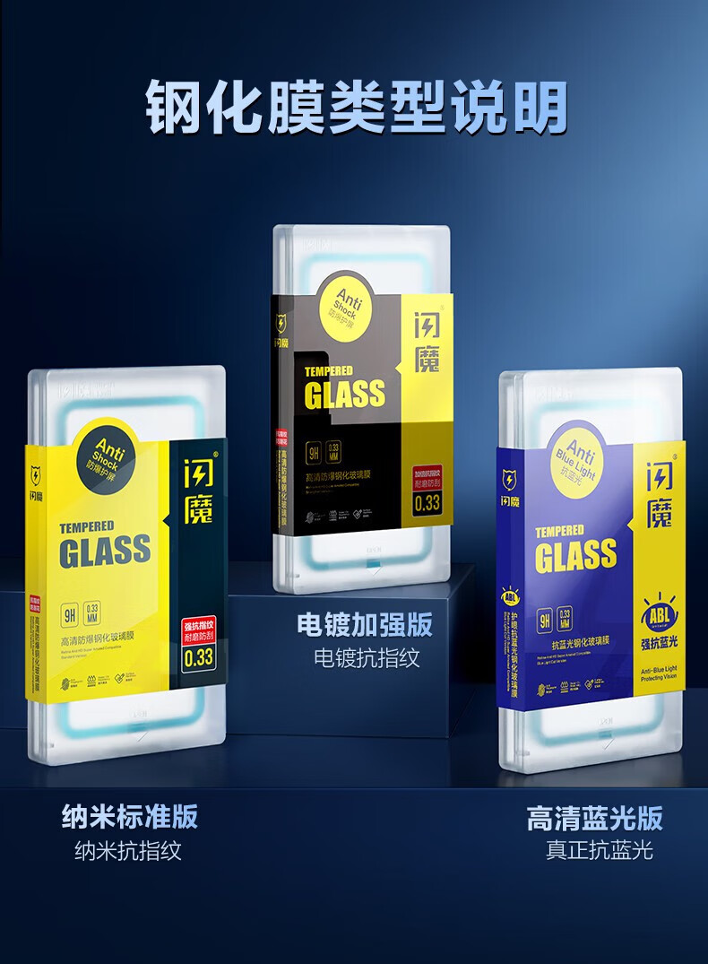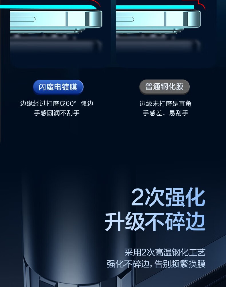 闪魔【精选百货】 苹果15pro/15promax钢化膜 iphone15/15plus手机膜 苹果14plus/13promax【加强版】1片装 贴坏包赔