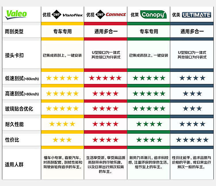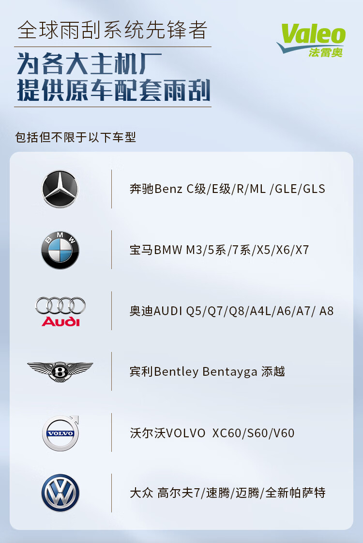 法雷奥(VALEO)SWF专用雨刮片无骨雨刷器对装 大众速腾 帕萨特B7 奥迪Q2L