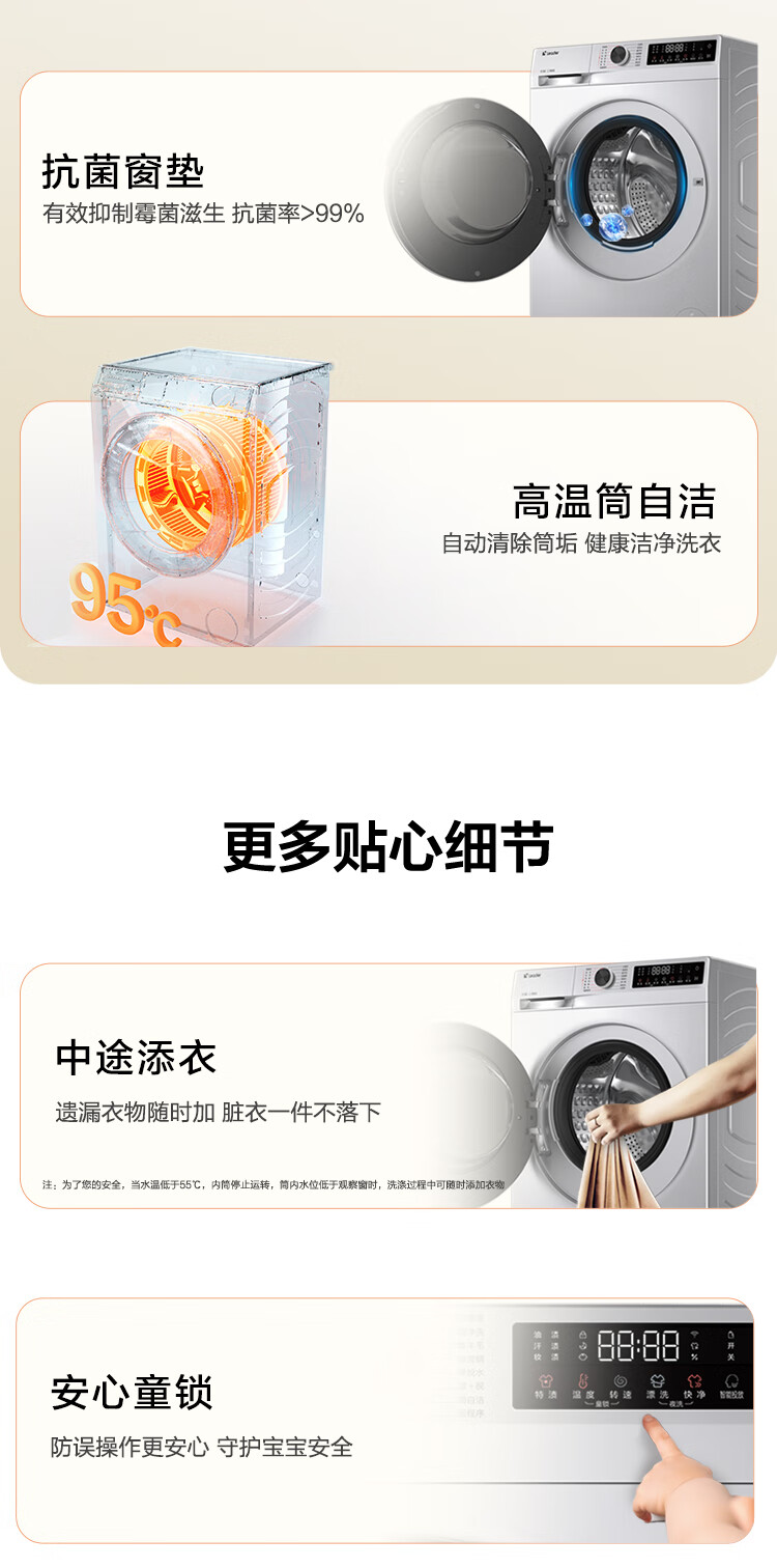 海尔(Haier)滚筒洗衣机全自动超薄洗烘一体机10公斤 懒人家用HMATE29S相似款大容量带烘干HMAX29S 国家补贴20% 行业销冠丨热销百万丨好评如云
