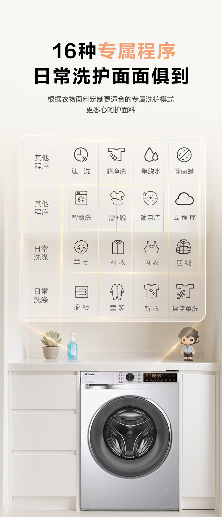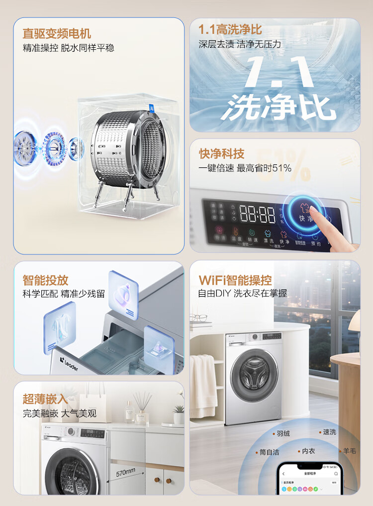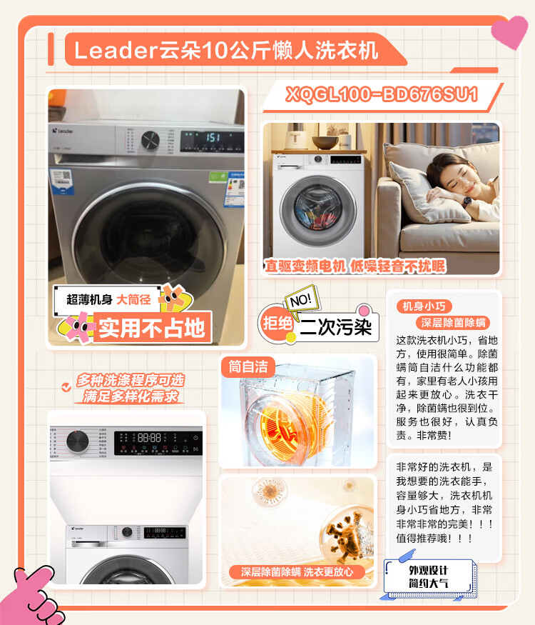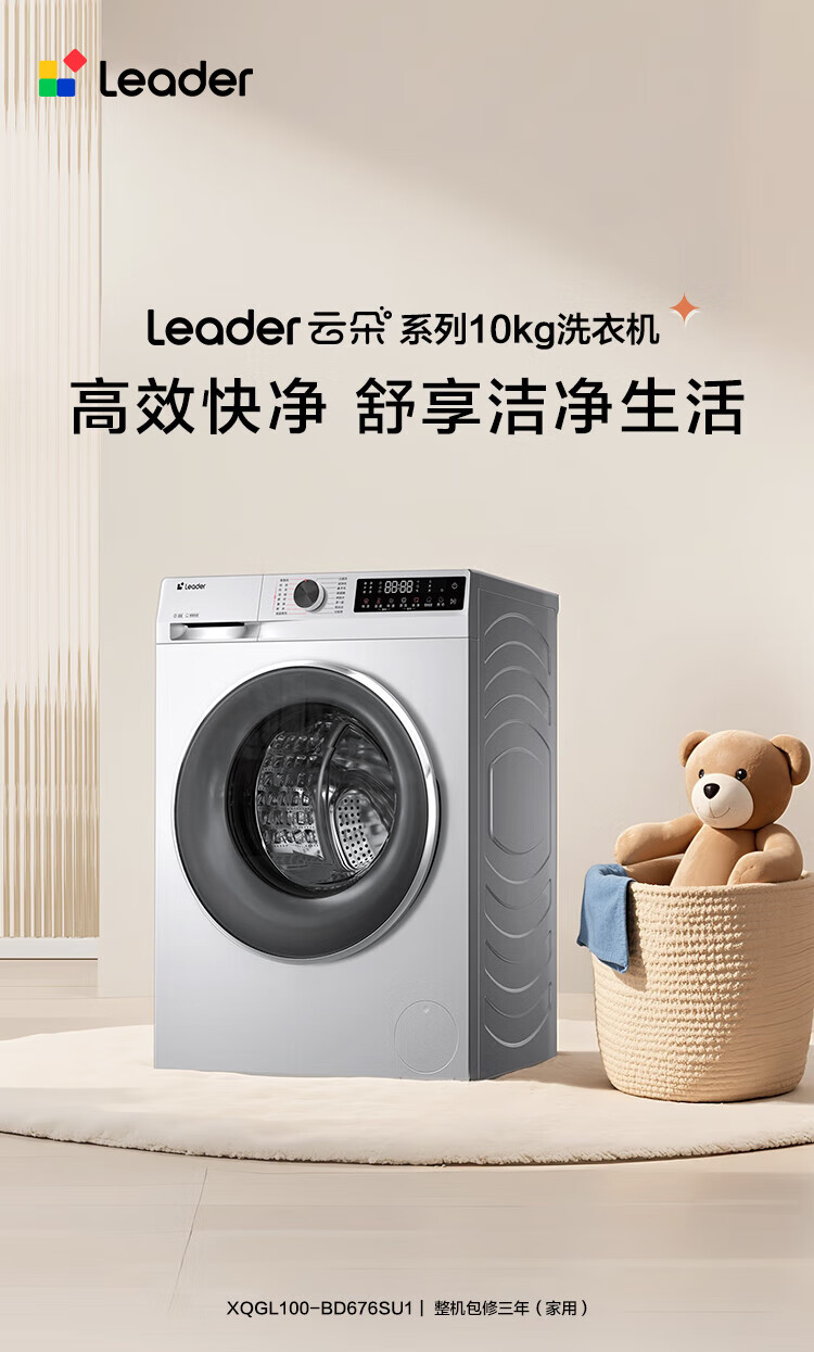 统帅(Leader)海尔智家滚筒洗衣机全自动 云朵10公斤 可叠双筒组成懒人三筒 直驱智投 国家补贴XQGL100-BD676SU1