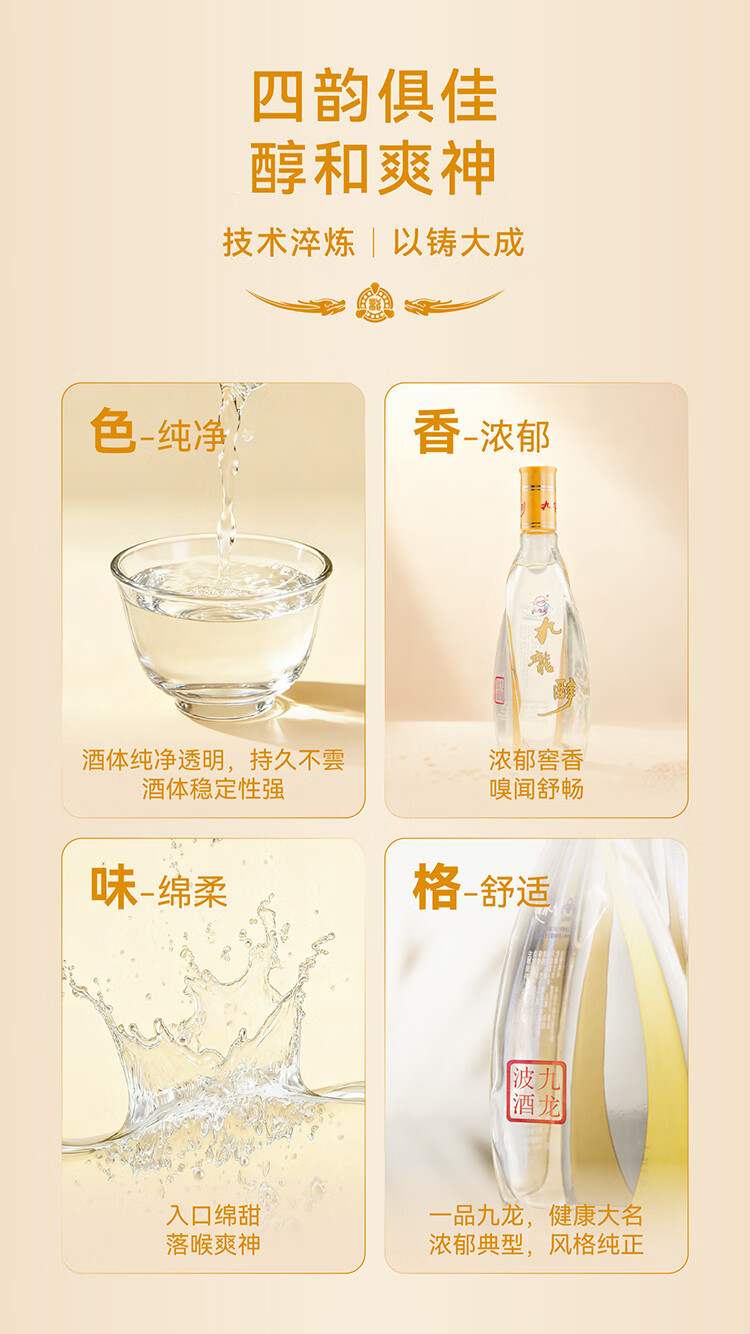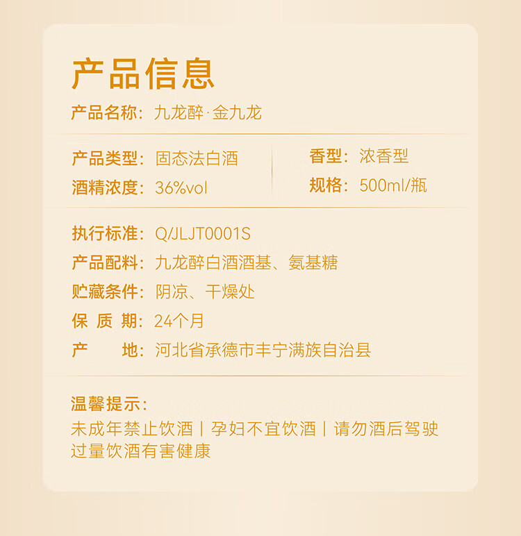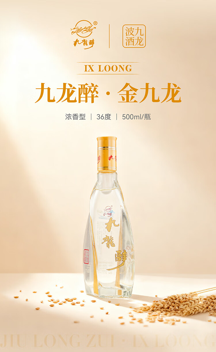 九龍醉(jiulongzui)金九龙 纯粮酿造 浓香馥郁口感绵柔36度整箱装口粮白酒中秋送礼 36度 500mL 4瓶