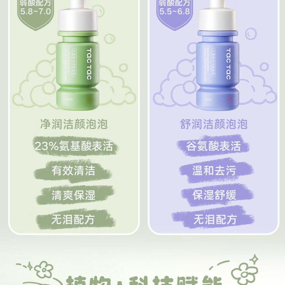 Tac Tac儿童洗面奶男童女童可卸日常防晒保湿清洁舒缓氨基酸洁面 舒润洁面100ml*2瓶