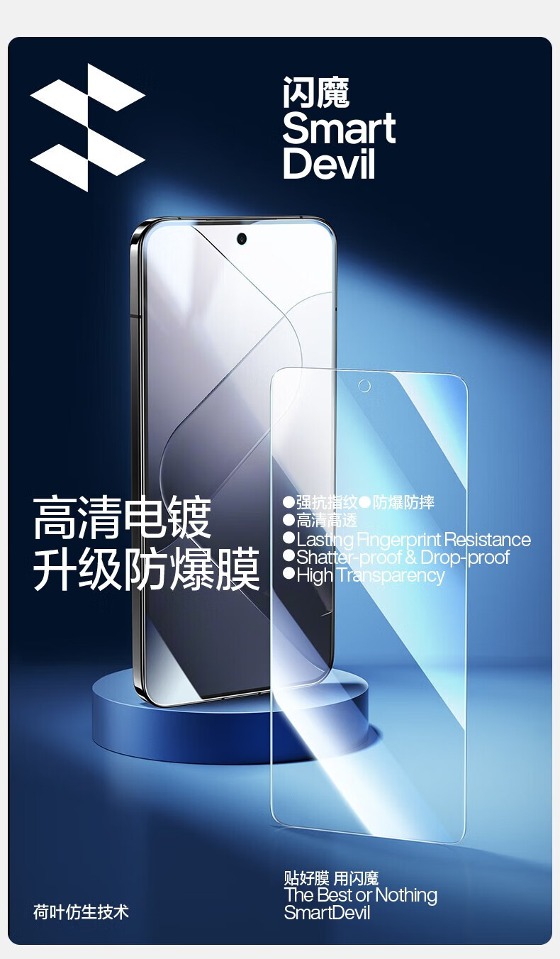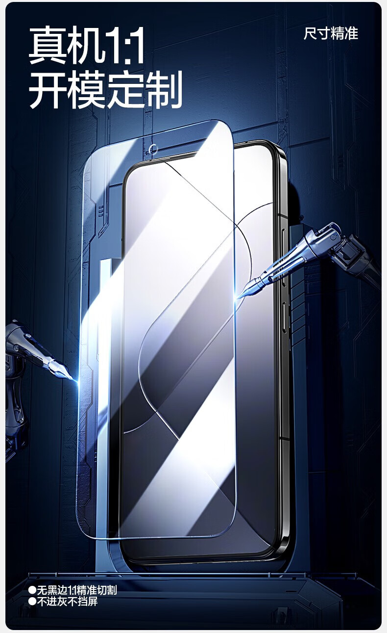 闪魔【精选百货】 苹果15pro/15promax钢化膜 iphone15/15plus手机膜 苹果14plus/13promax【加强版】1片装 贴坏包赔
