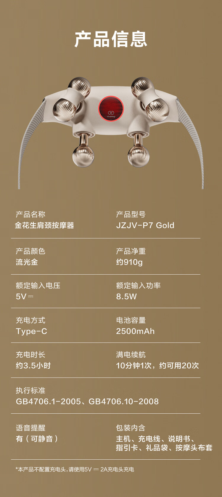 京东京造好事发生滚揉肩颈按摩器P7Gold豪华版颈椎按摩器肩颈腰背部按摩仪颈部男生生日礼物女士男