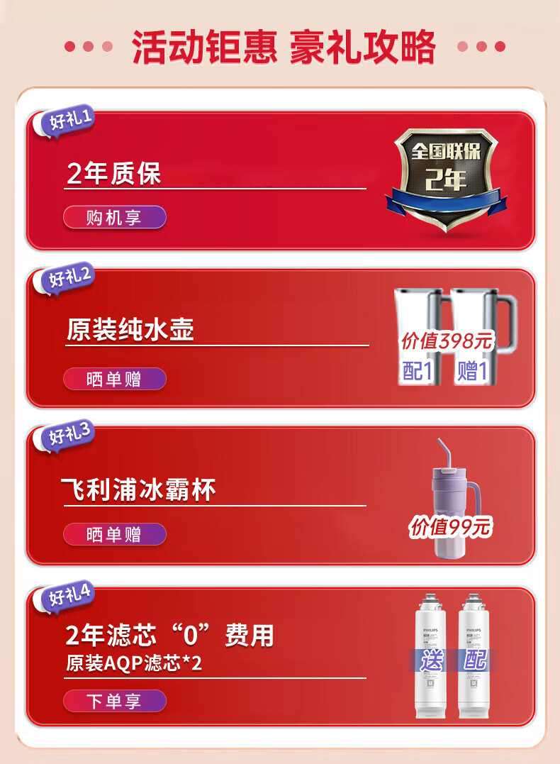 飞利浦(PHILIPS)冰块净水器家用台式即热免安装净饮机矿泉加热直饮一体机饮水机 冰境i1新款全自动制冰机ADD8604 【冰境i1升级款】制冰即热两芯装