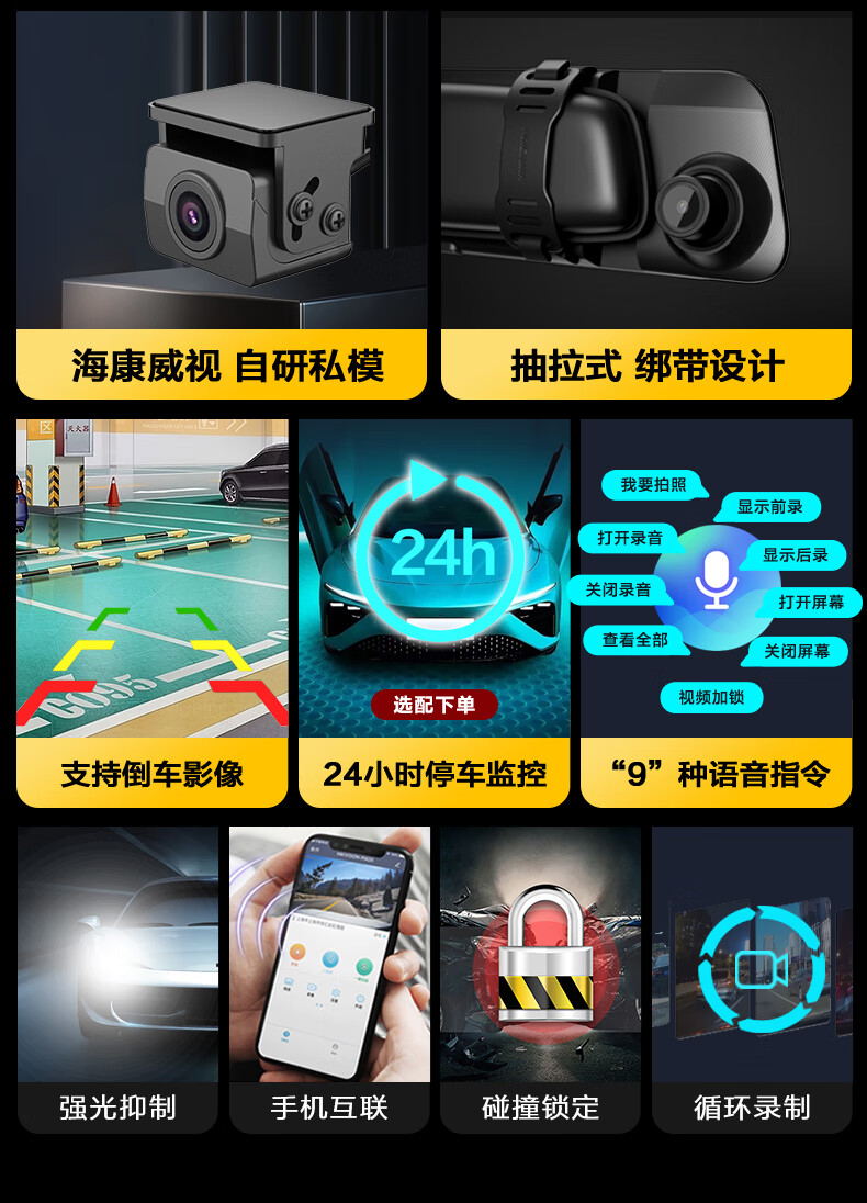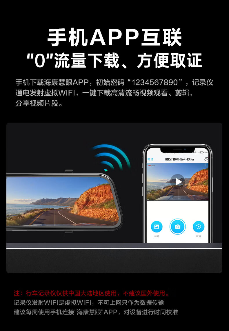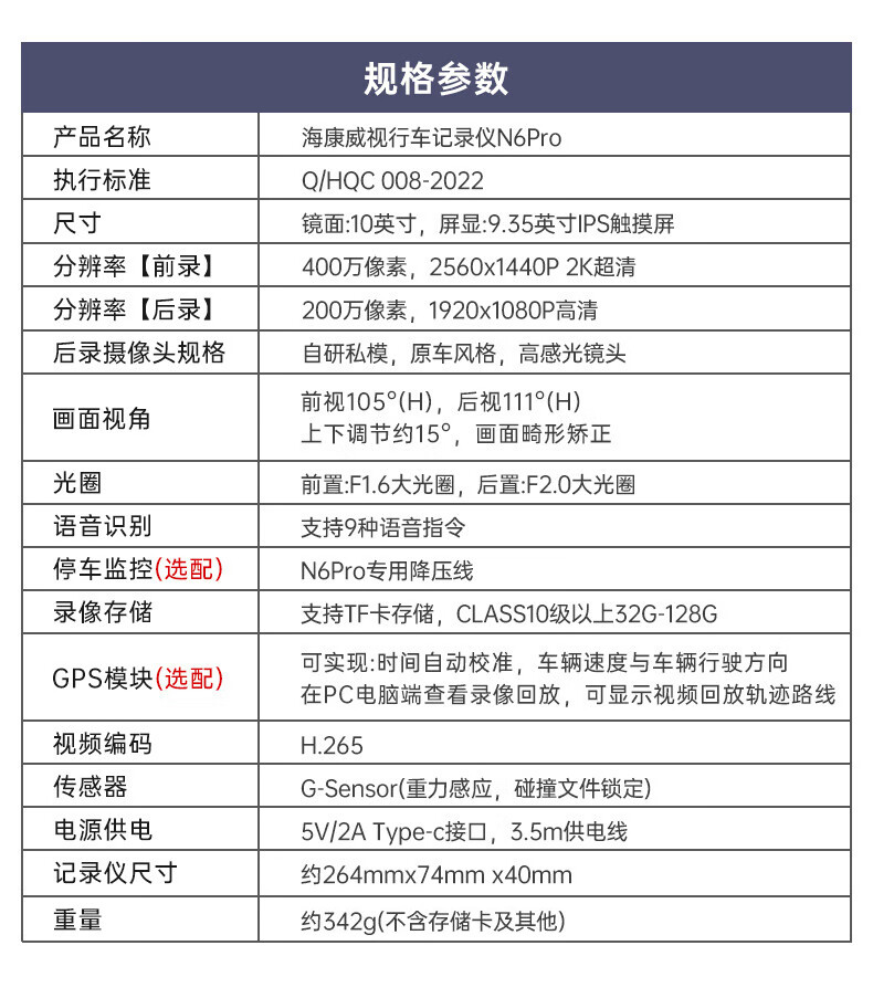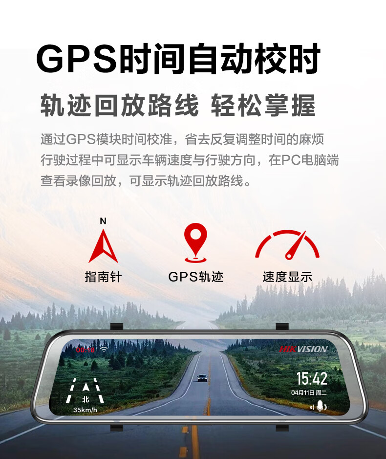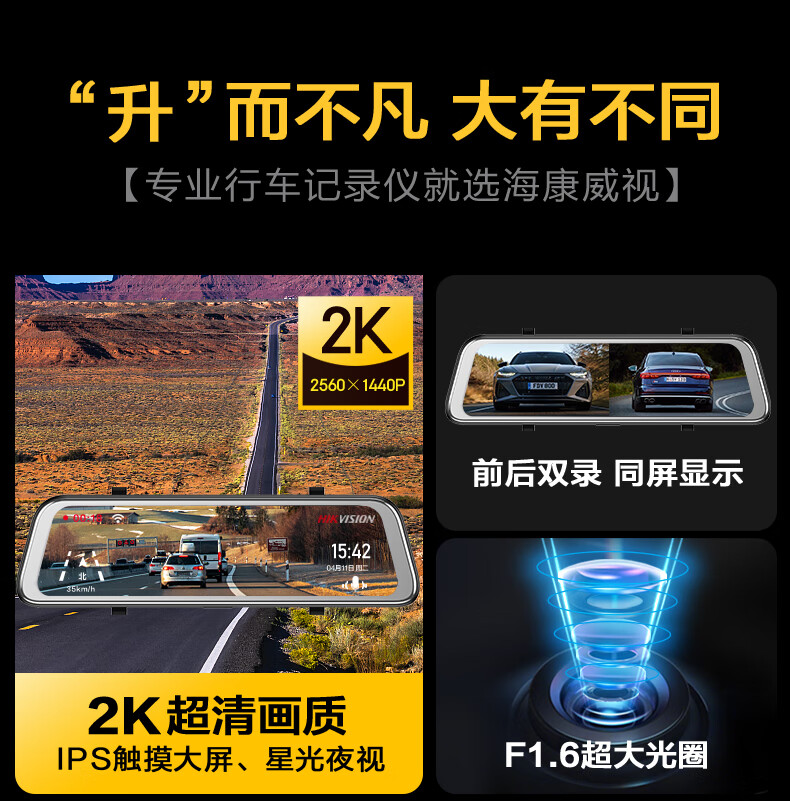 HIKVISION海康威视N6Pro行车记录仪 2K超清星光夜视前后双录流媒体后视镜