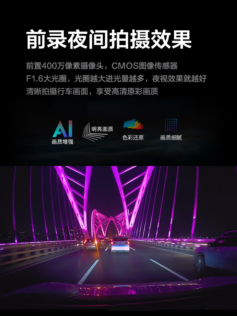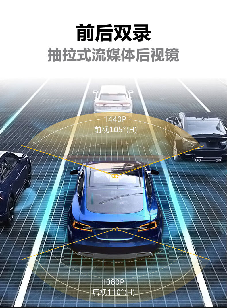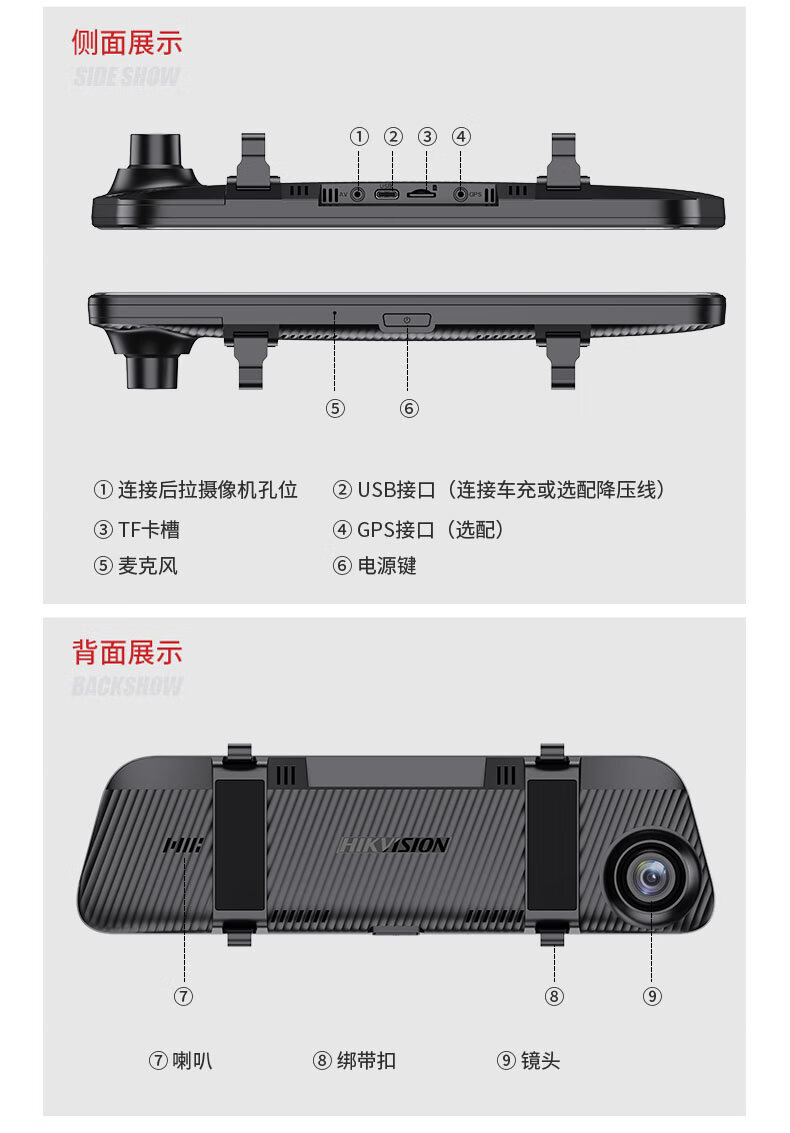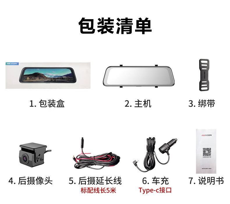 HIKVISION海康威视N6Pro行车记录仪 2K超清星光夜视前后双录流媒体后视镜