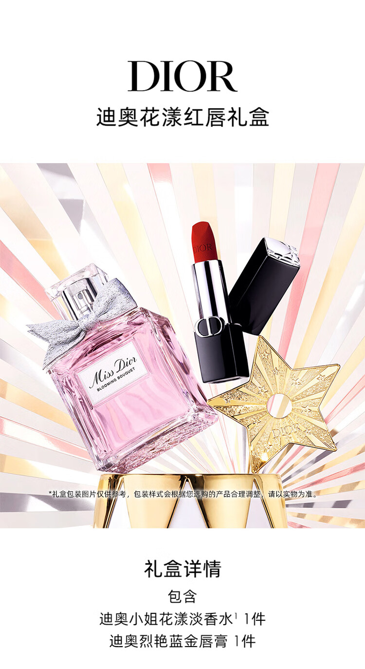 迪奥DIOR花漾红唇口红香水礼盒套装(999+花漾30ml)生日礼物送女友