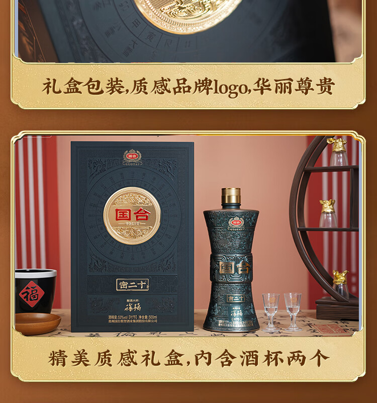 五粮液股份出品 官方授权 52度优级 浓香型白酒 喜福盛世 52度 500mL 2瓶 礼盒装(内含酒具)