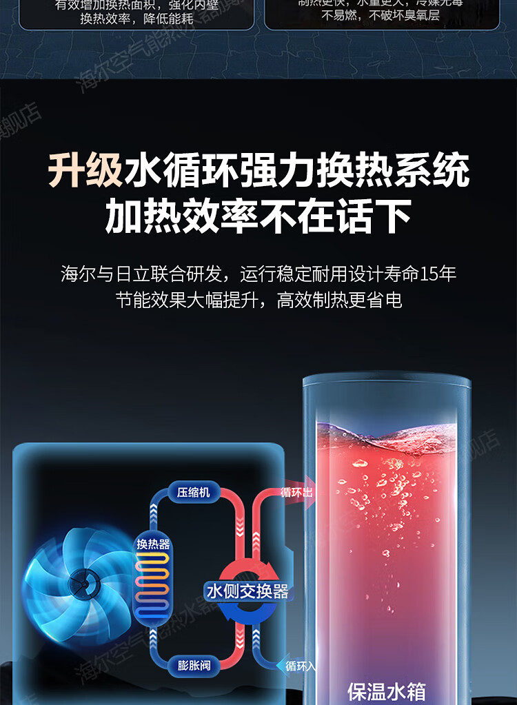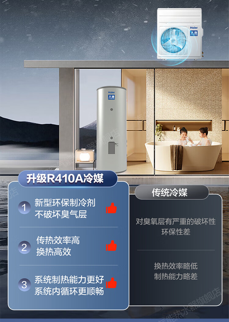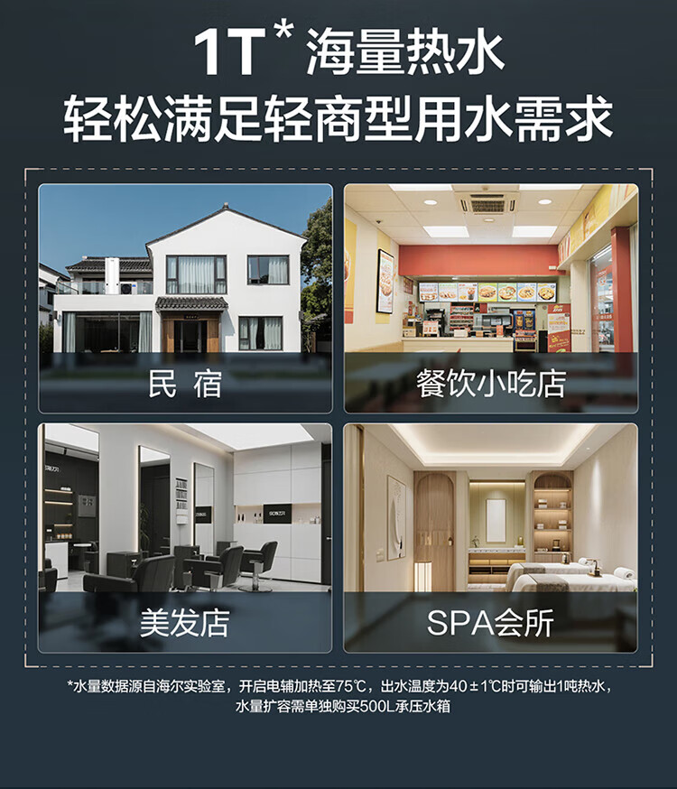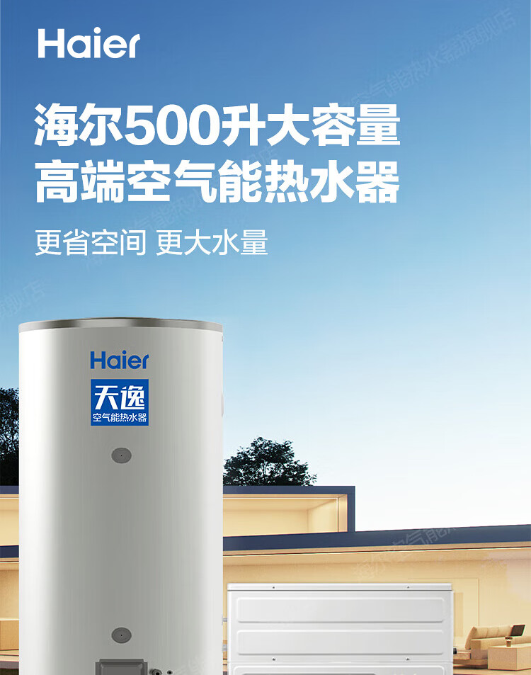 海尔(Haier)0元安装商用空气能热水器500升速热3匹空气源热泵别墅家用酒店旅宾馆美容饭店洗澡用以旧换新补贴 500升水循环60℃高水温【0元装】