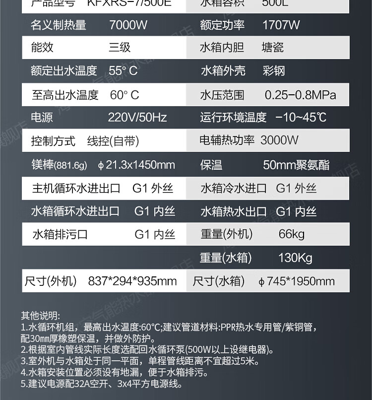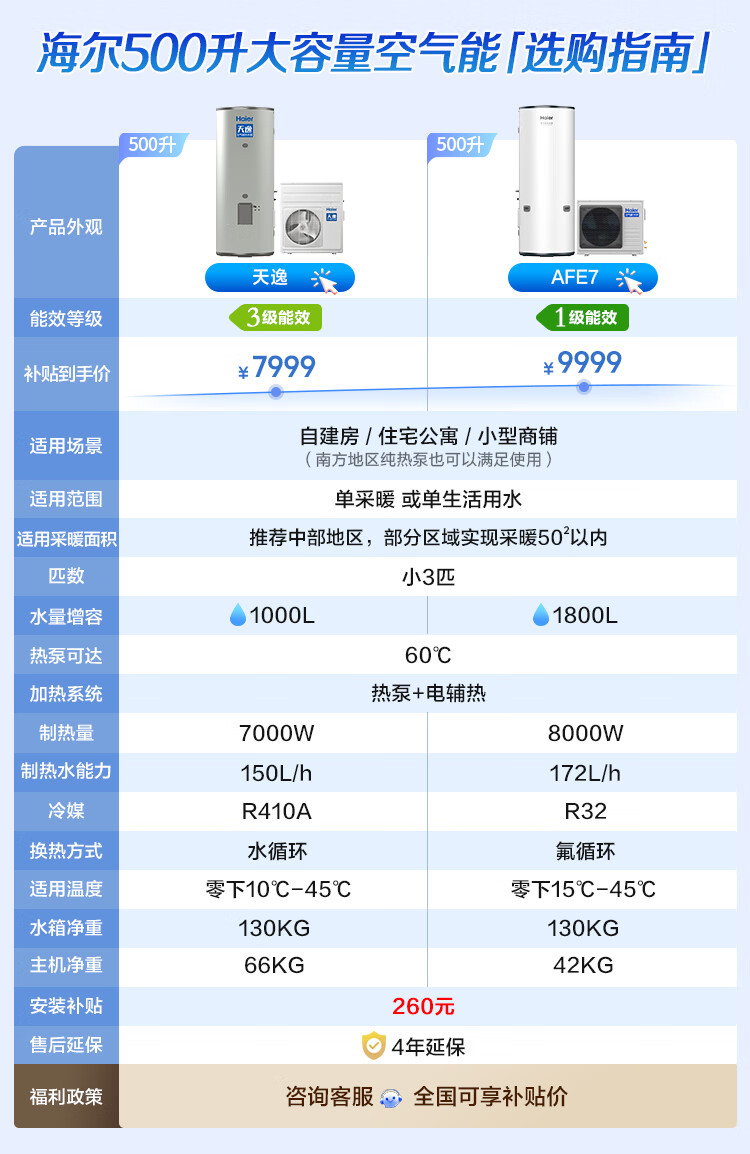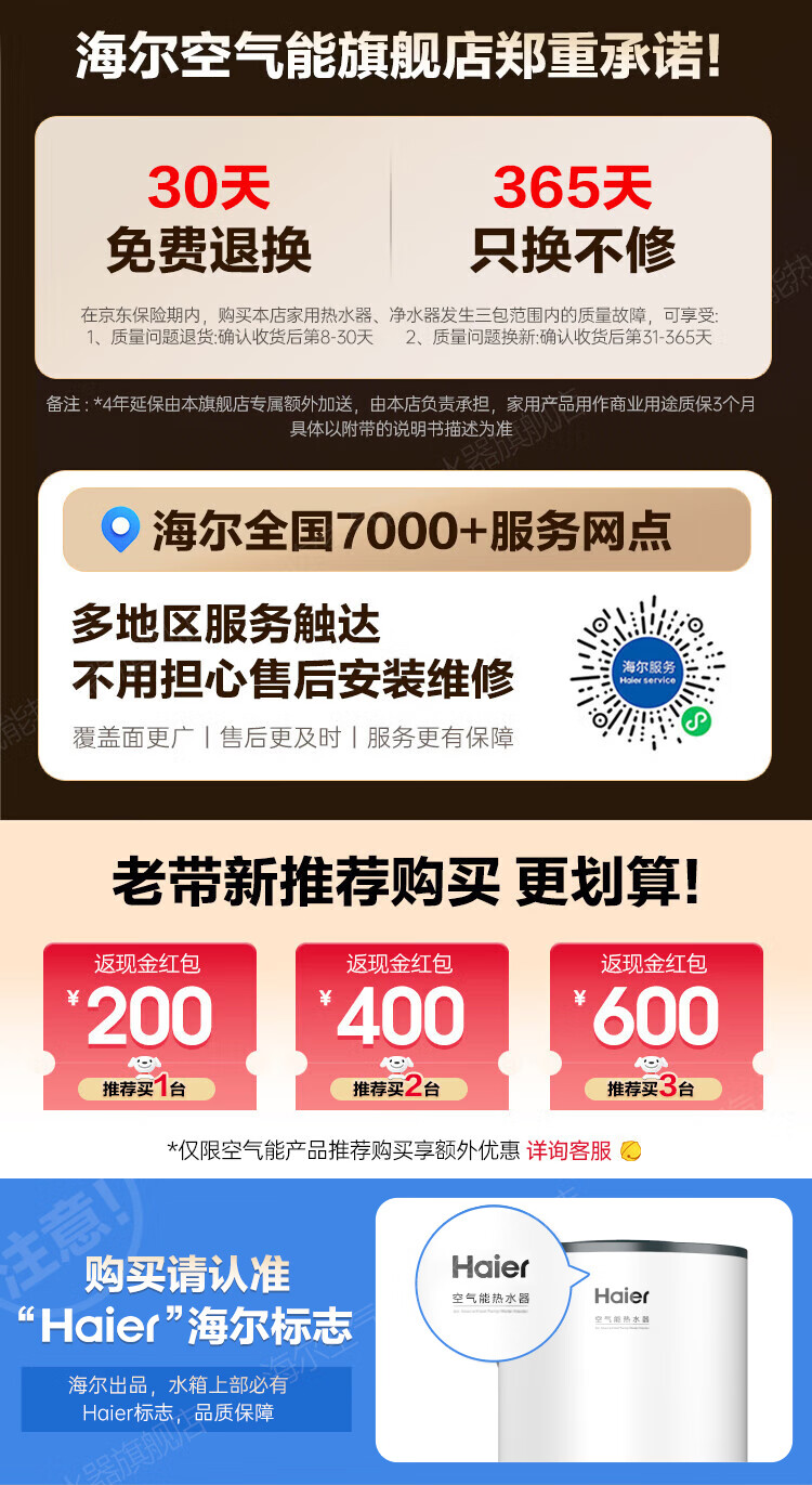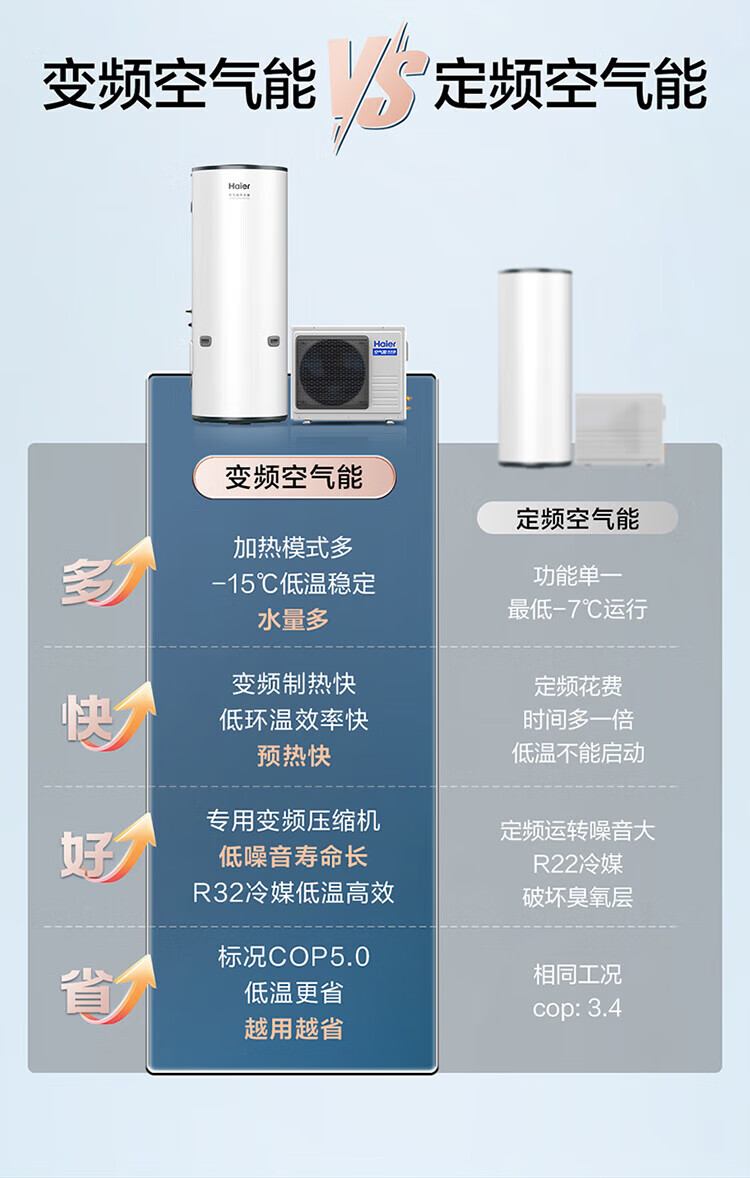 海尔(Haier)0元安装商用空气能热水器500升速热3匹空气源热泵别墅家用酒店旅宾馆美容饭店洗澡用以旧换新补贴 500升水循环60℃高水温【0元装】