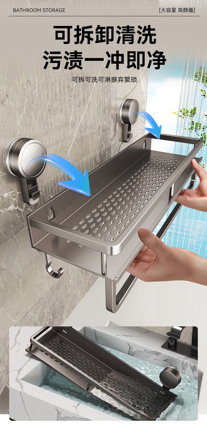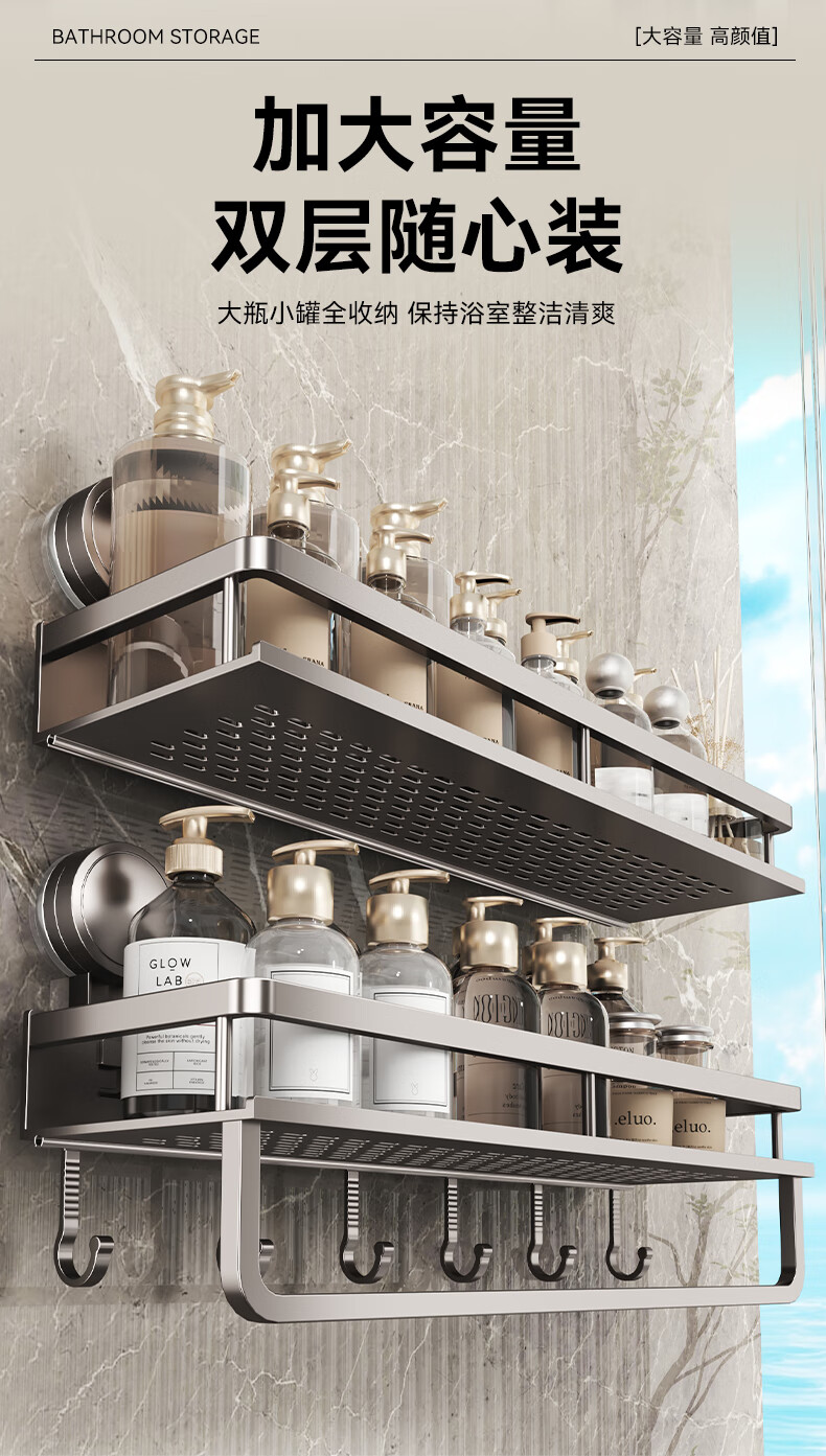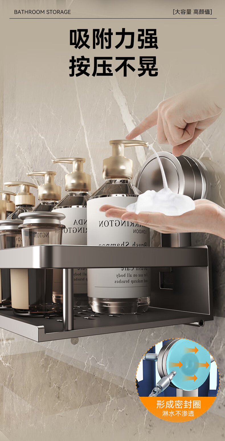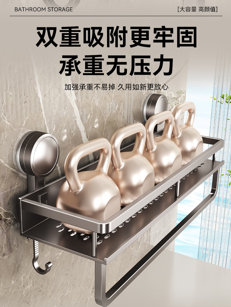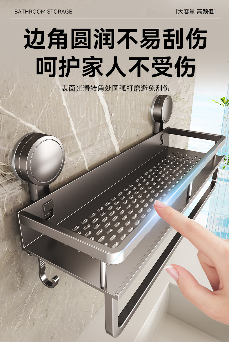 百悍浴室吸盘置物架太空铝免打孔卫生间挂件免钉胶洗漱台置物架