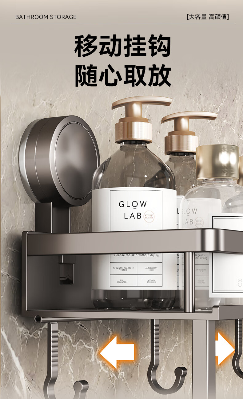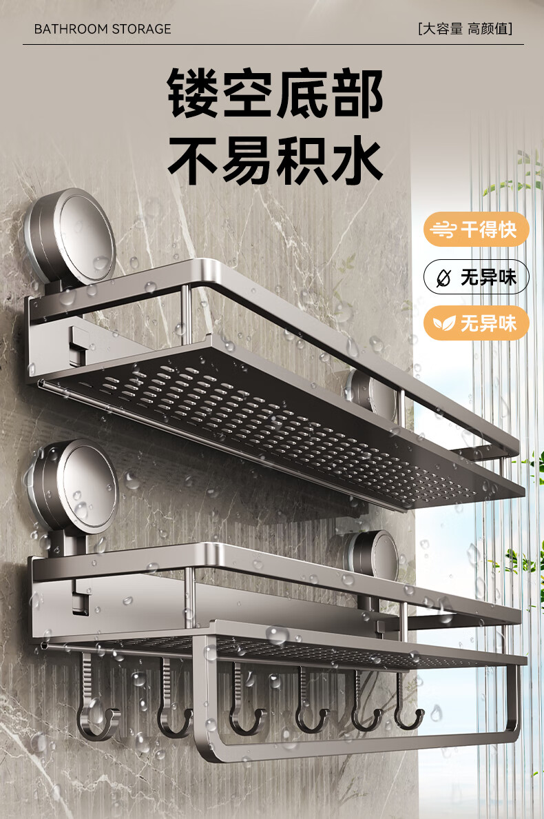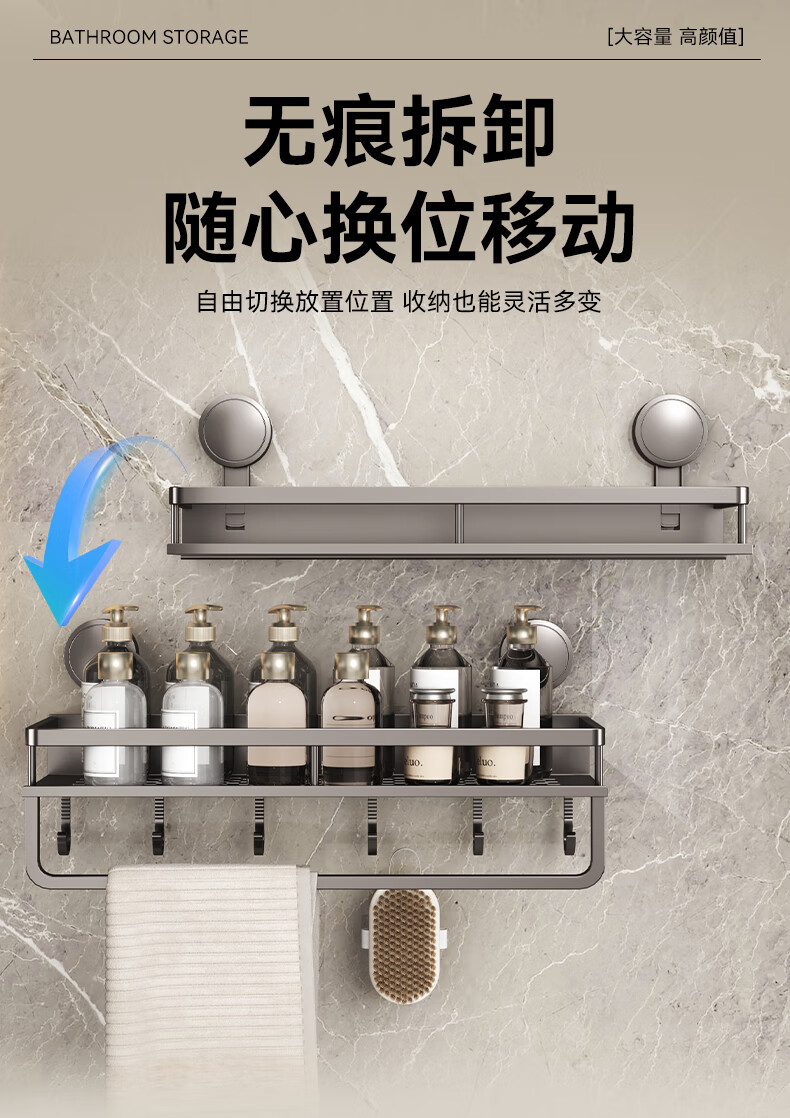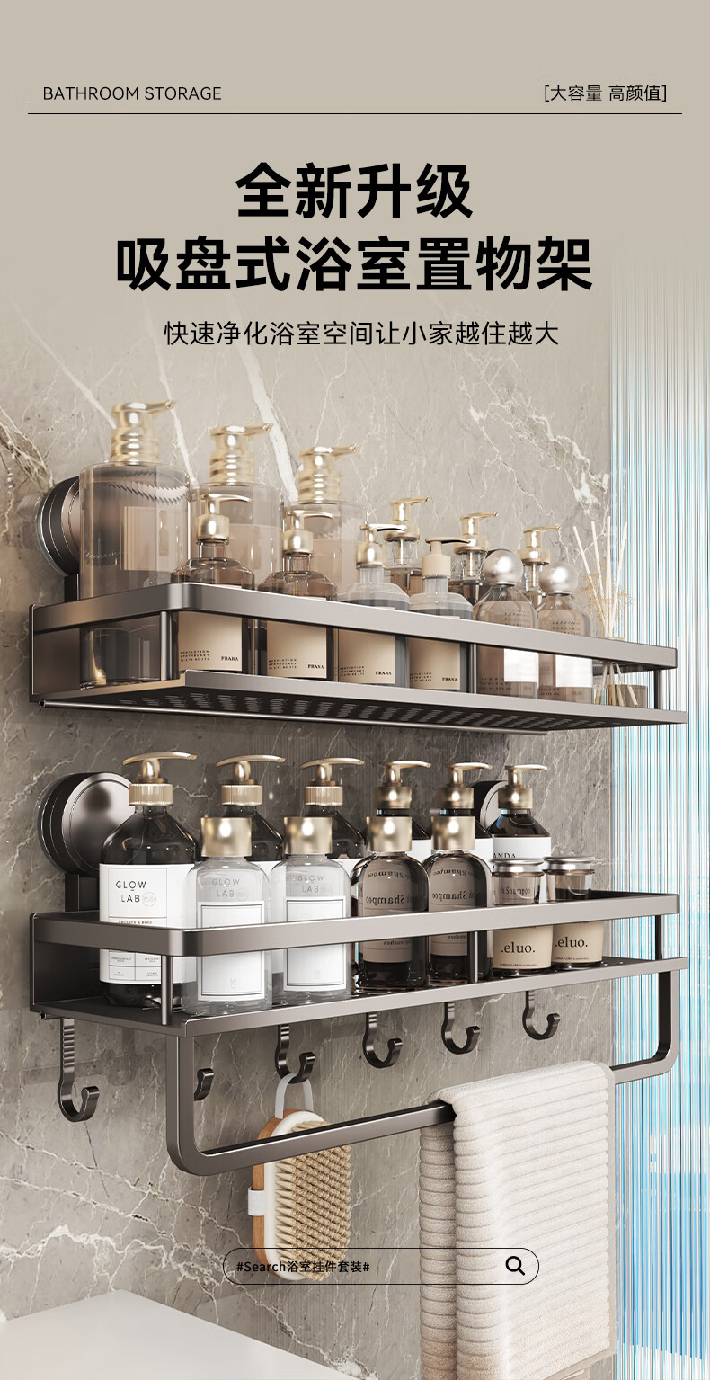 百悍浴室吸盘置物架太空铝免打孔卫生间挂件免钉胶洗漱台置物架