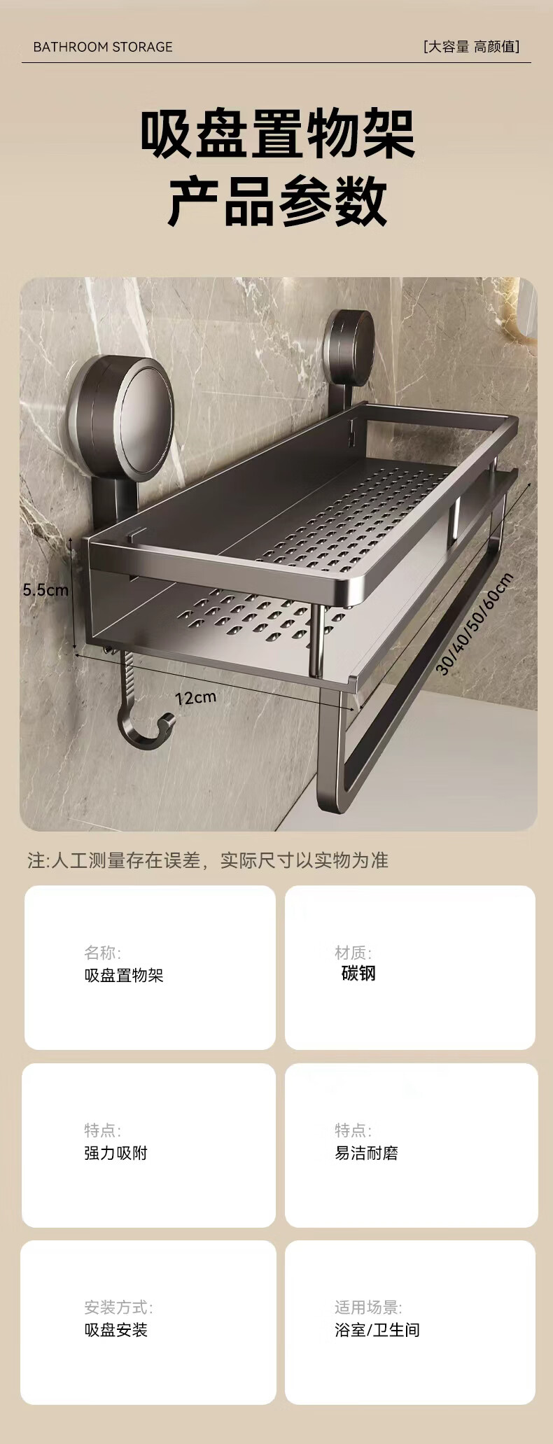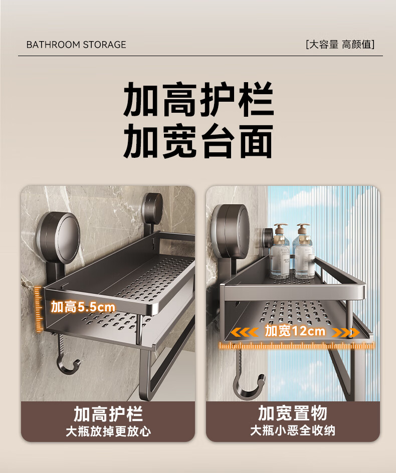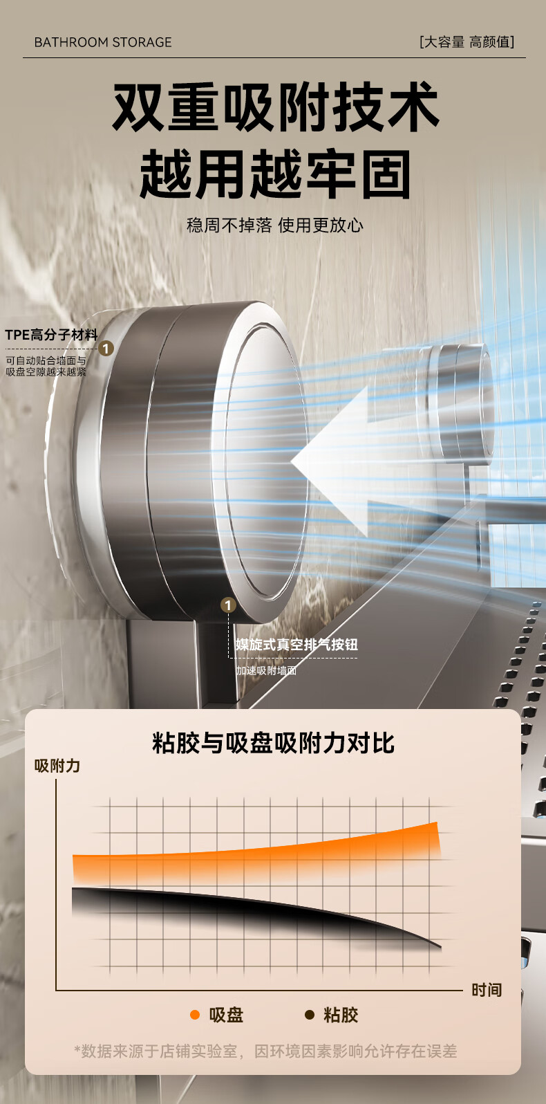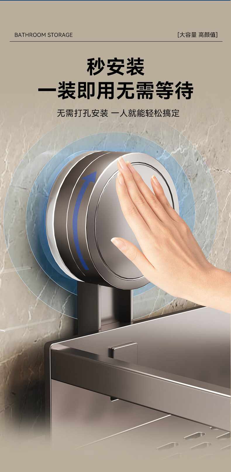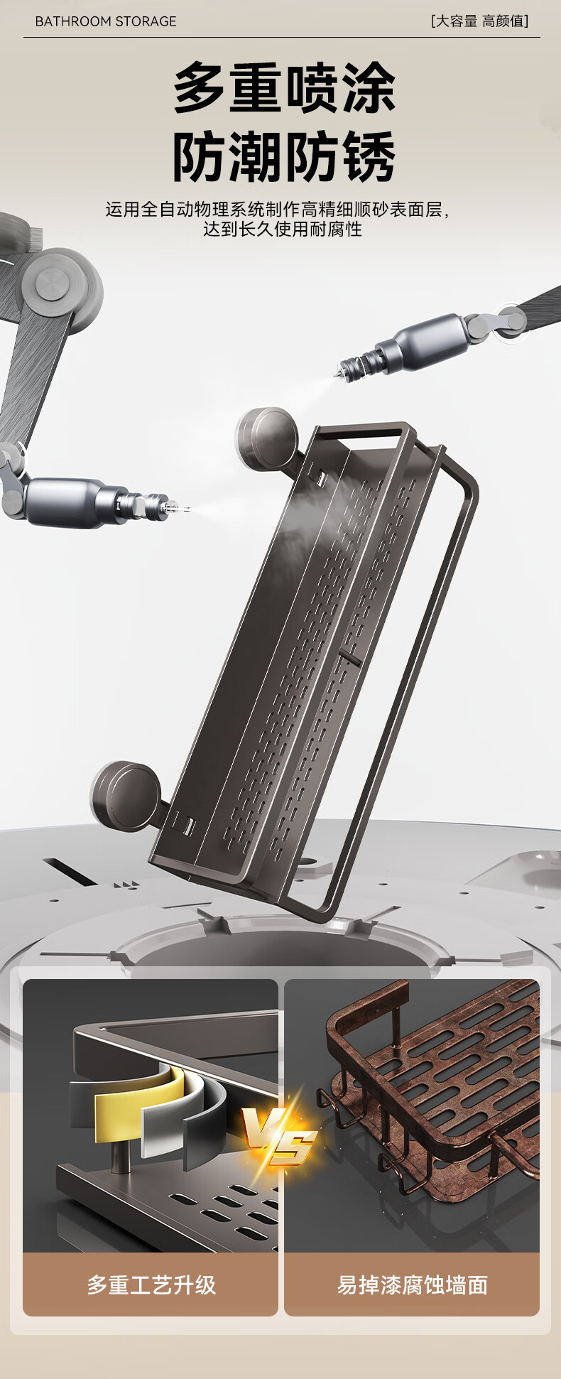 百悍浴室吸盘置物架太空铝免打孔卫生间挂件免钉胶洗漱台置物架