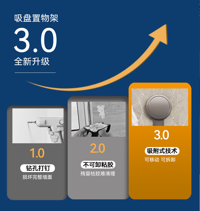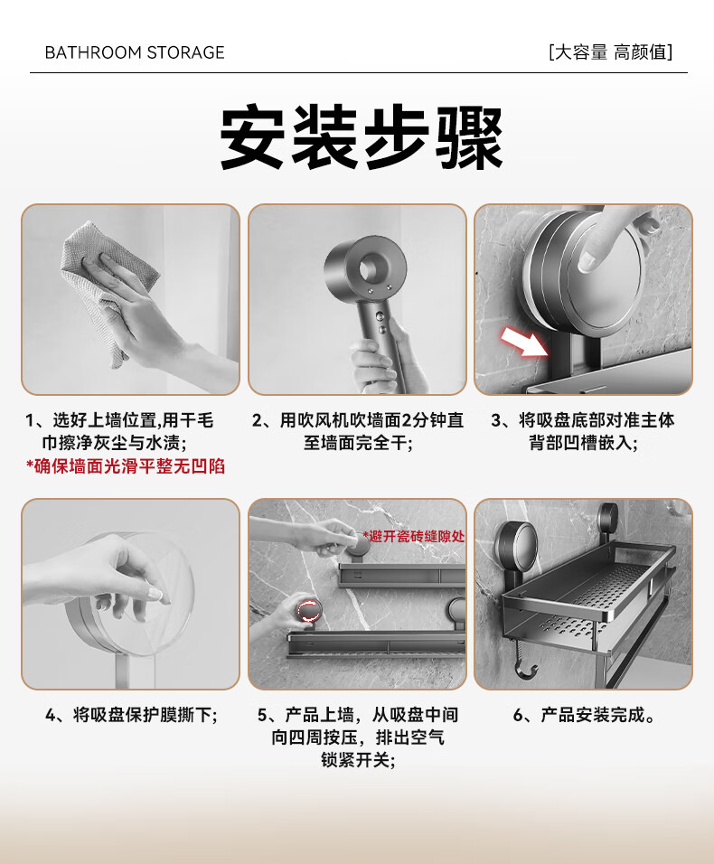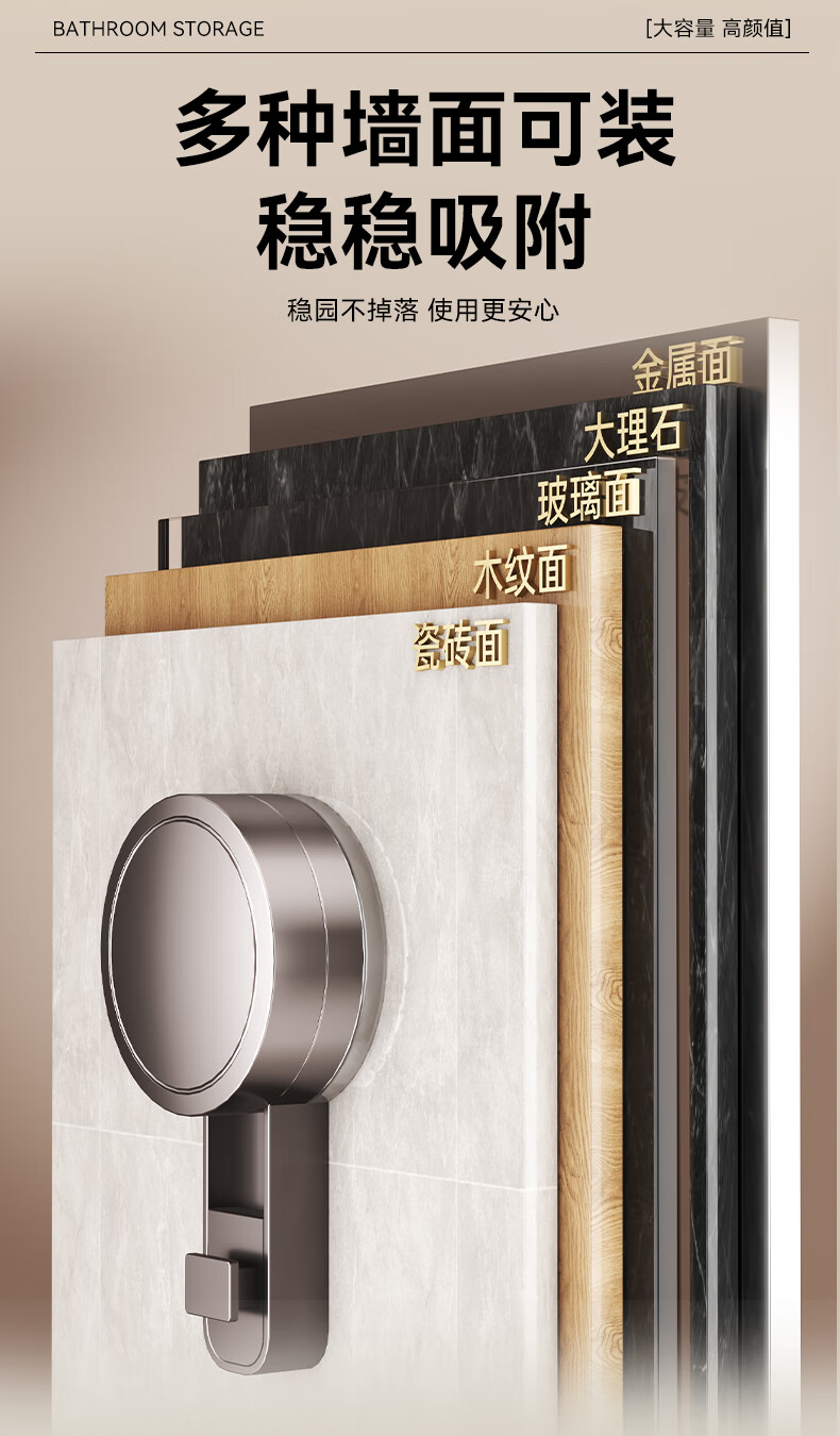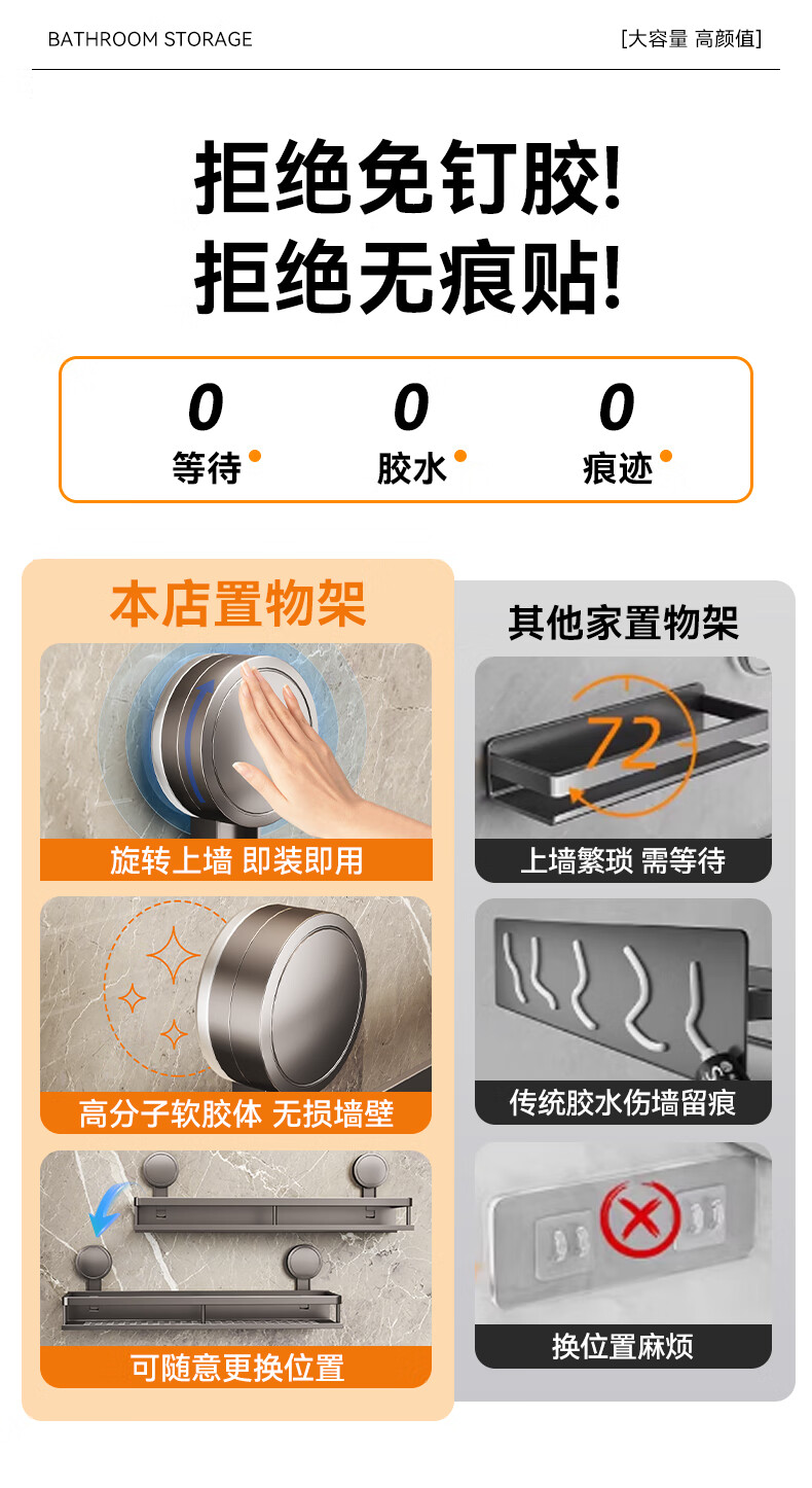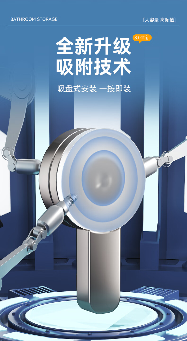 百悍浴室吸盘置物架太空铝免打孔卫生间挂件免钉胶洗漱台置物架