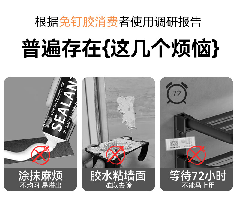 百悍毛巾架免打孔卫生间置物架浴室挂件厕所浴巾架套装卫浴洗手间收纳