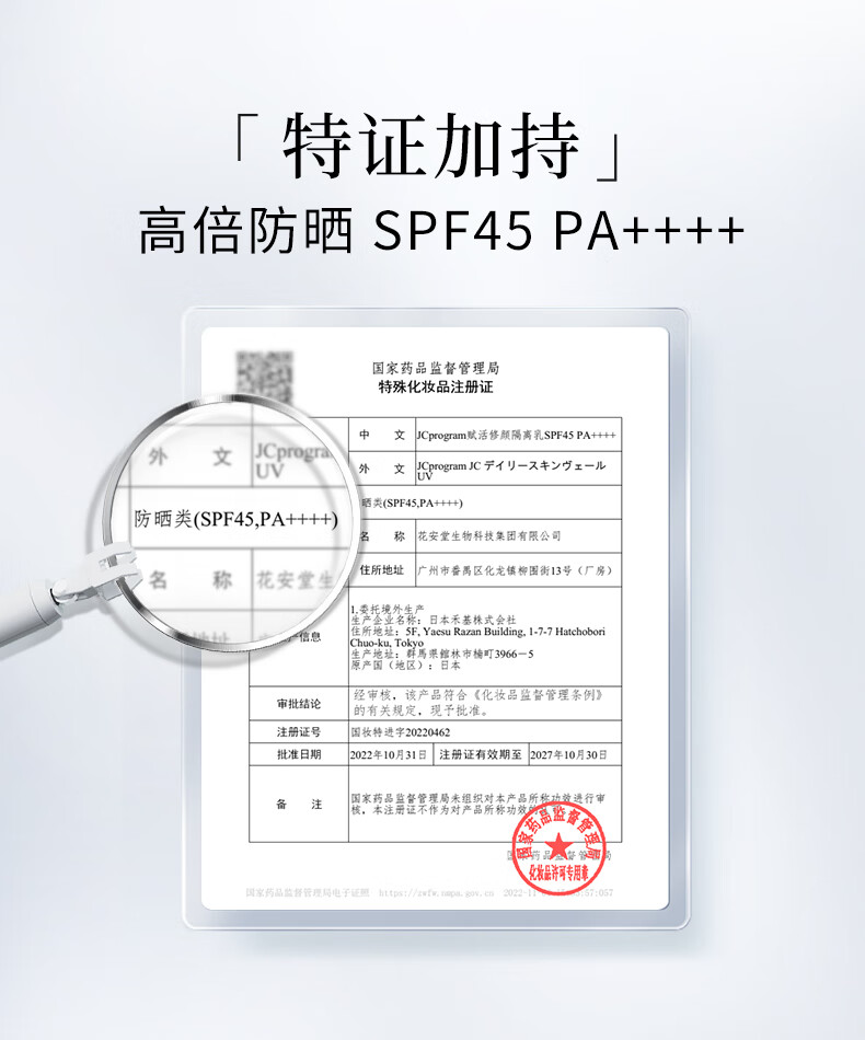 自由之丘赋活修颜防晒隔离乳SPF45PA++++清爽防晒修饰肤色隔离保护