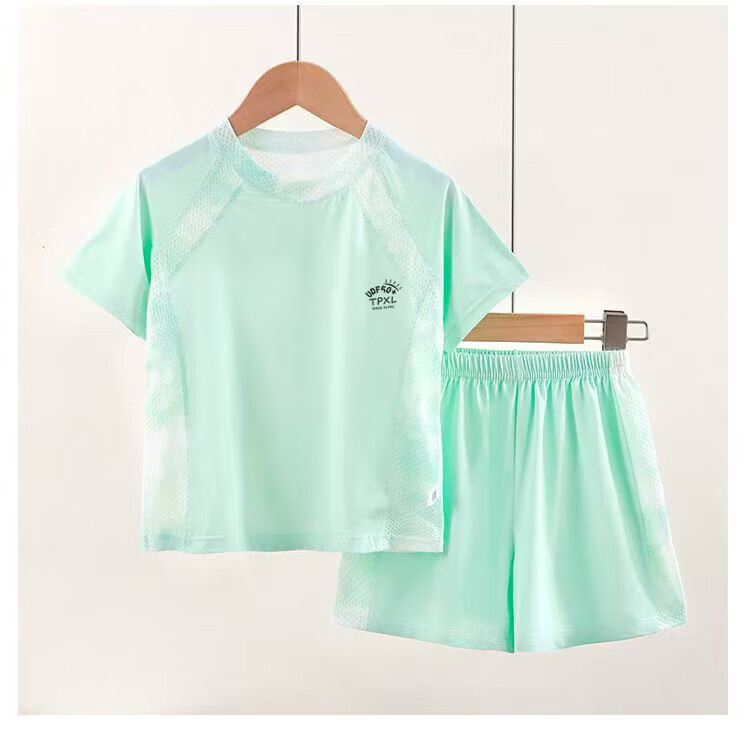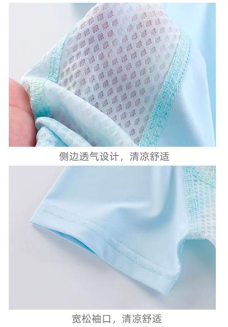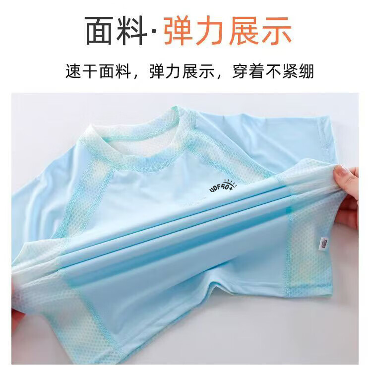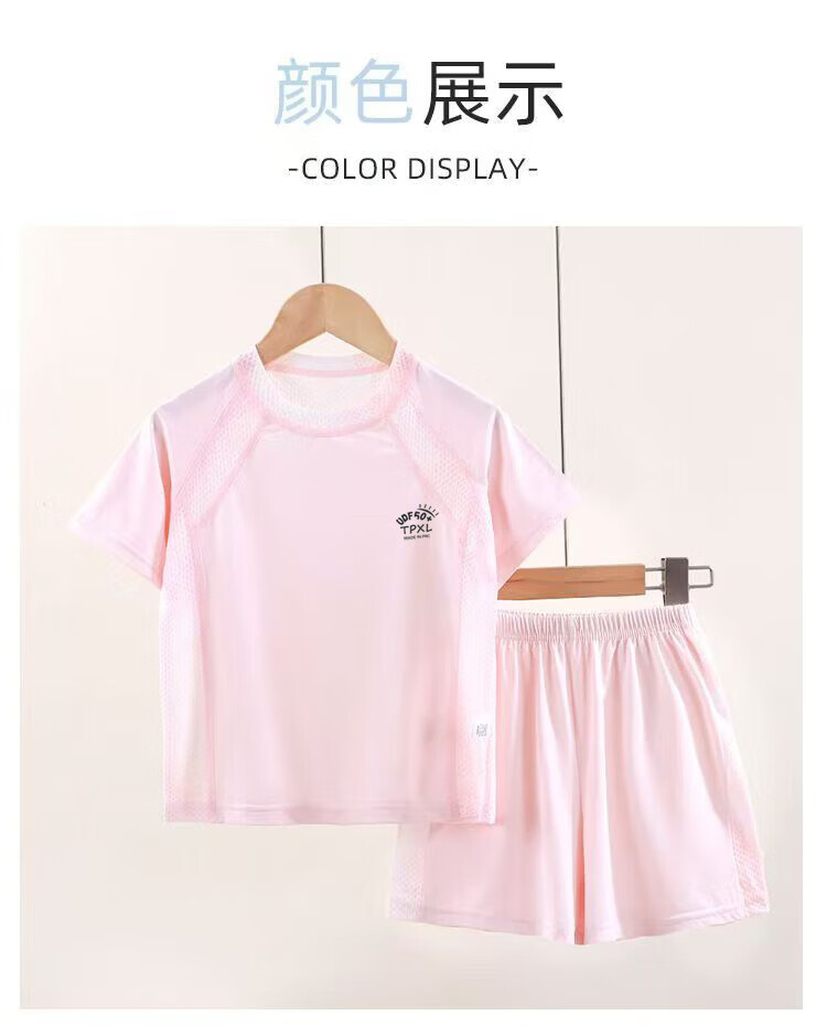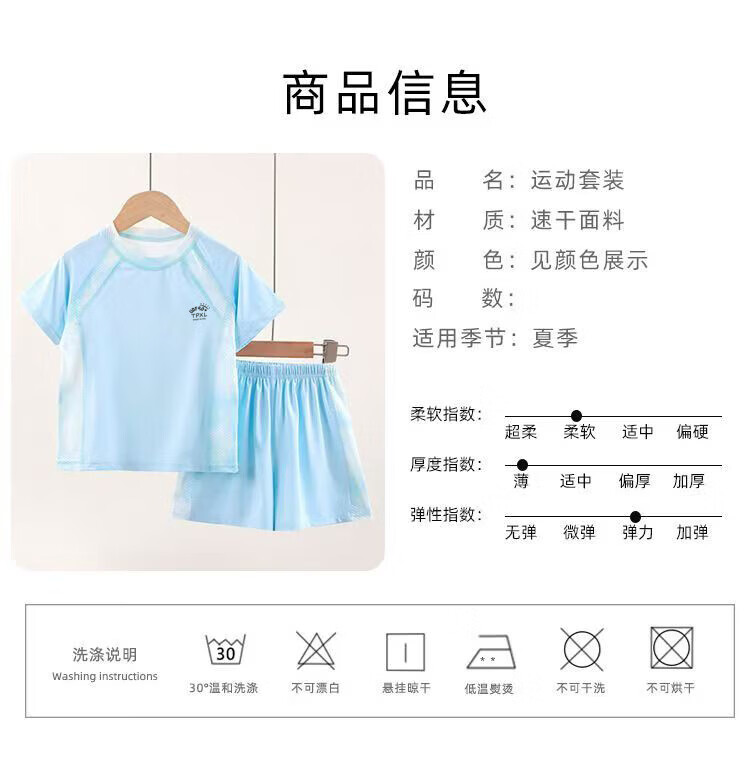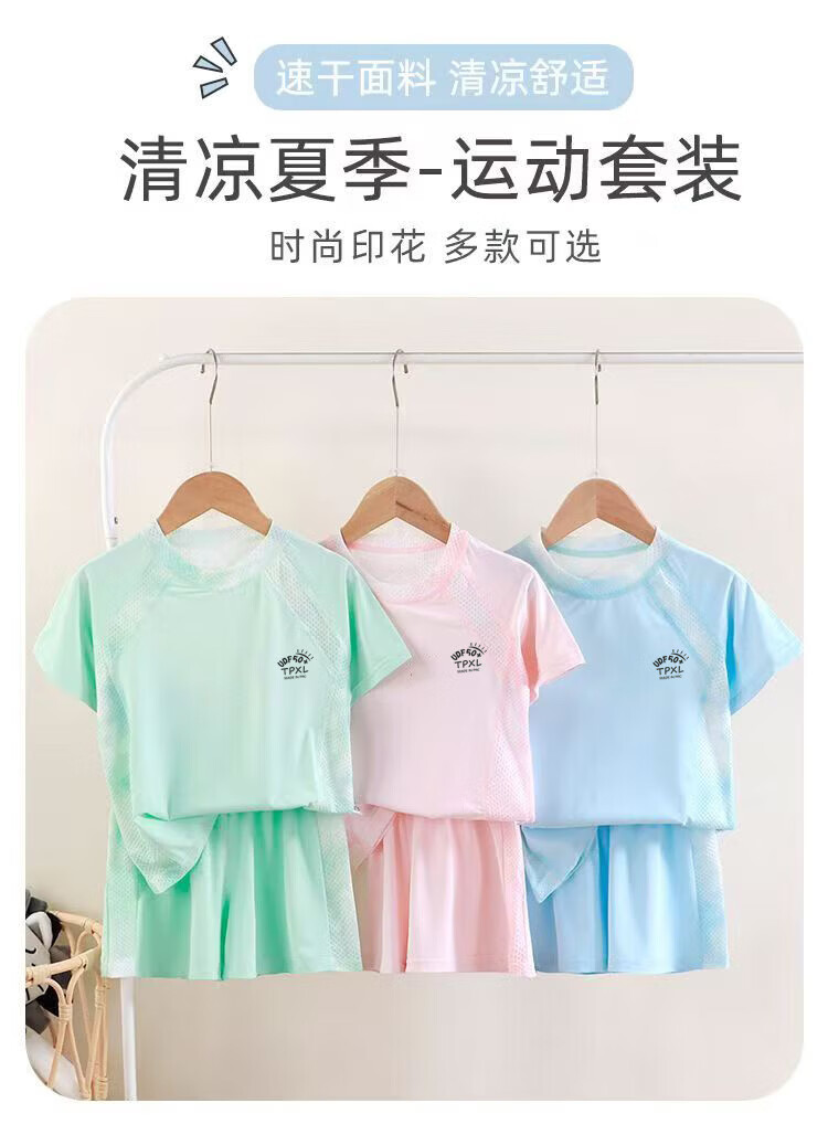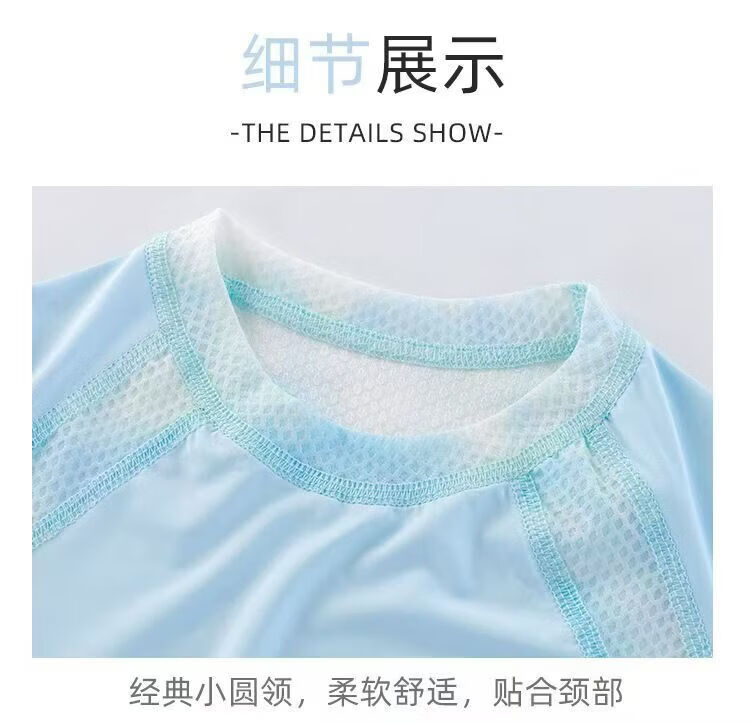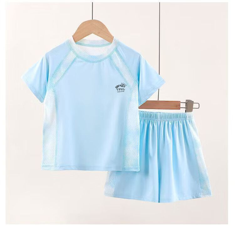 小猪班纳(PEPCO)儿童夏季冰丝速干防晒运动两件套装男童女童短袖短裤冰感透气 2603镂空套装蓝色 150 cm