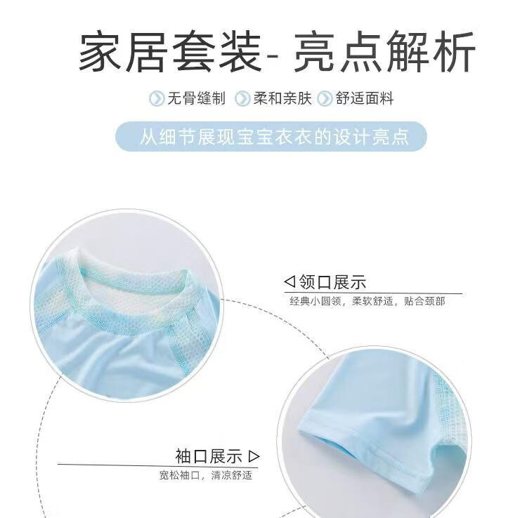 木生棉【莫代尔】婴儿童上衣服裤子两件套装夏季薄宝宝弹力分体短袖短裤 浅蓝色 73 cm