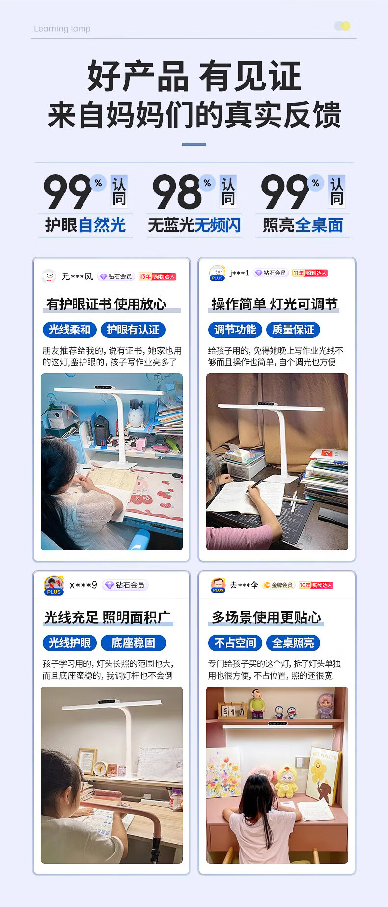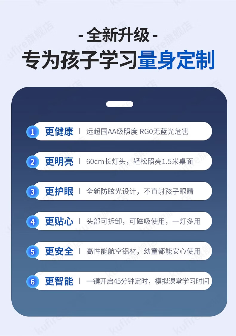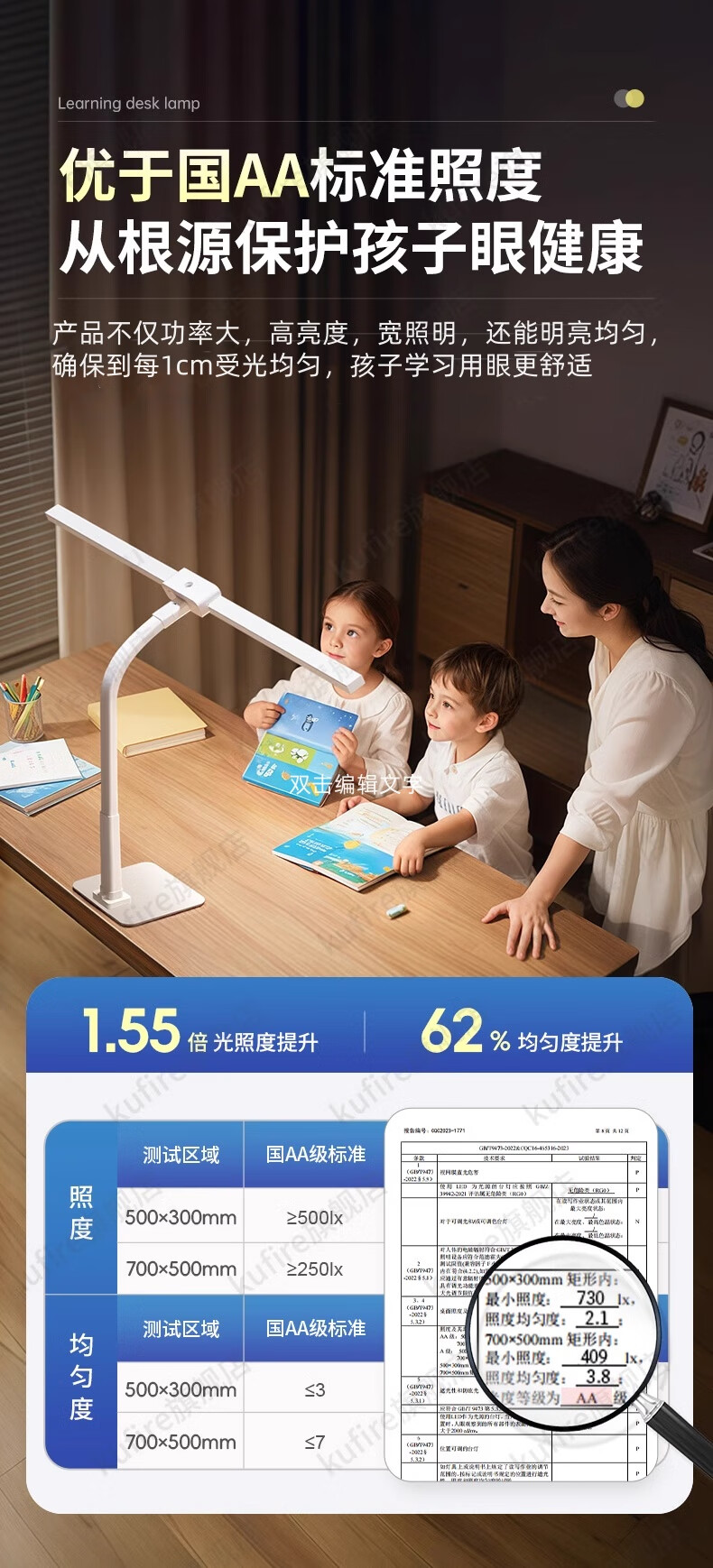 万火台灯护眼灯学生学习台灯学生专用防蓝光儿童台风宿舍读写灯高中生