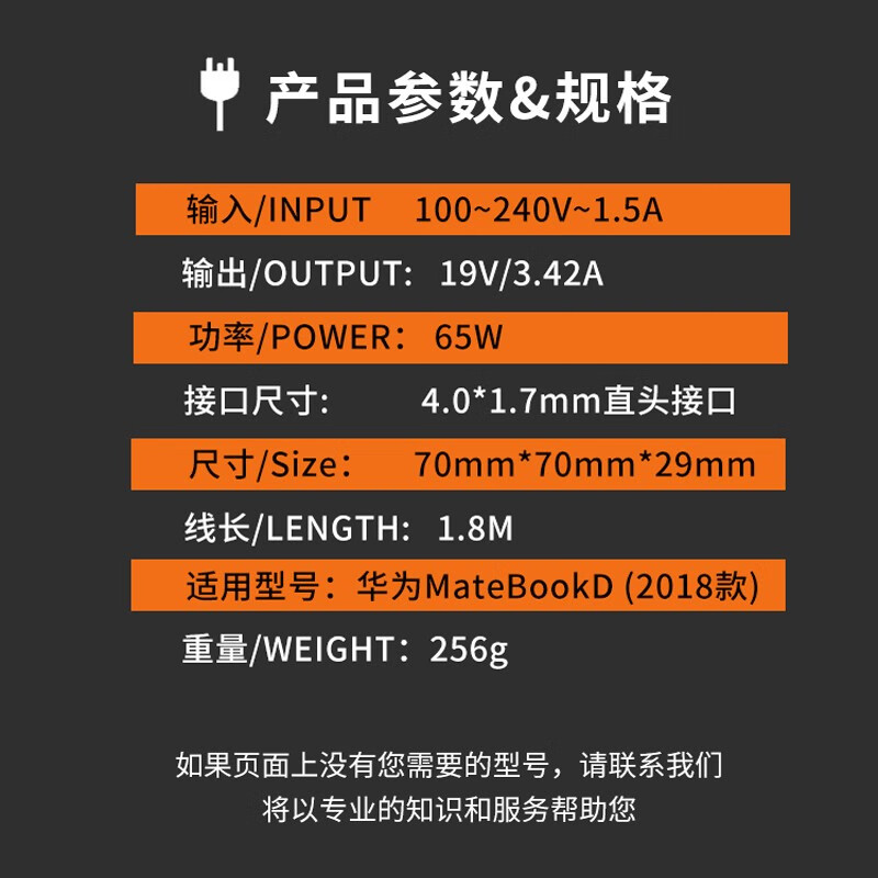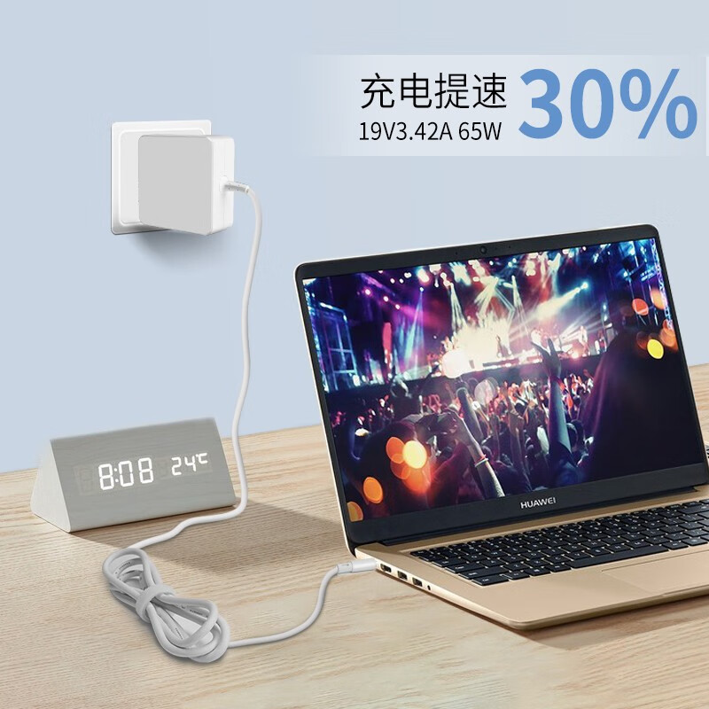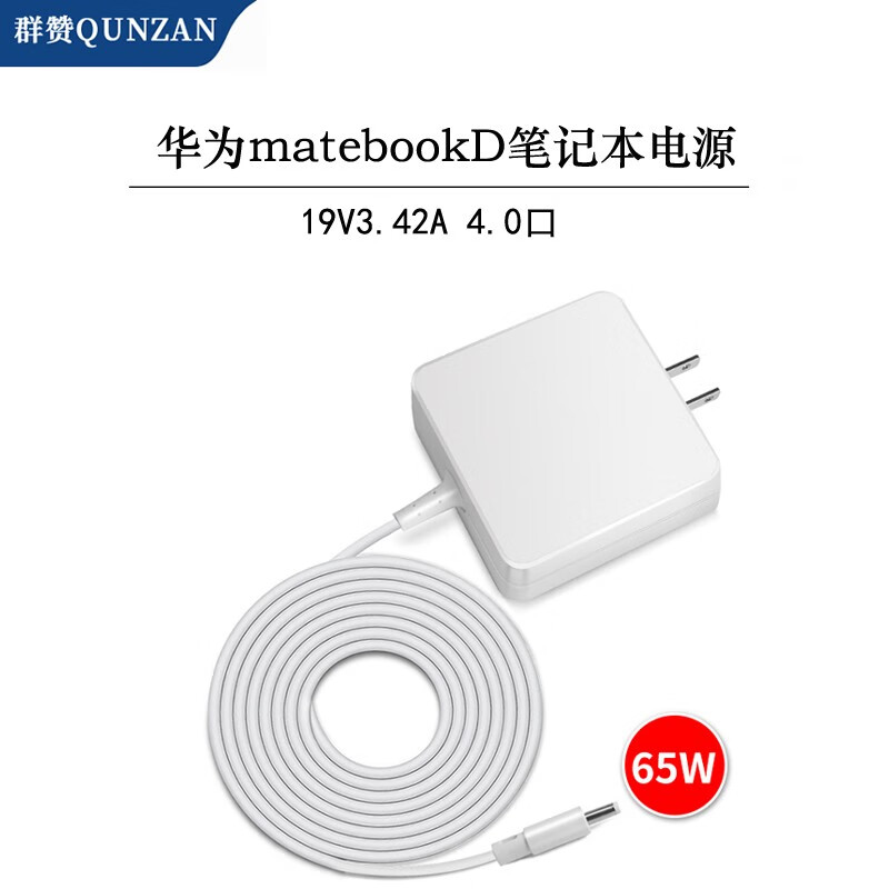 群赞 华为笔记本电脑充电器190340c00 19V3.42A 65W 15.6英寸电源适配器充电器线电源线充电线圆孔圆头 白色4.0圆口15.6英寸笔记本 MateBook D(i5版)