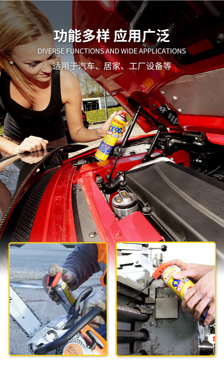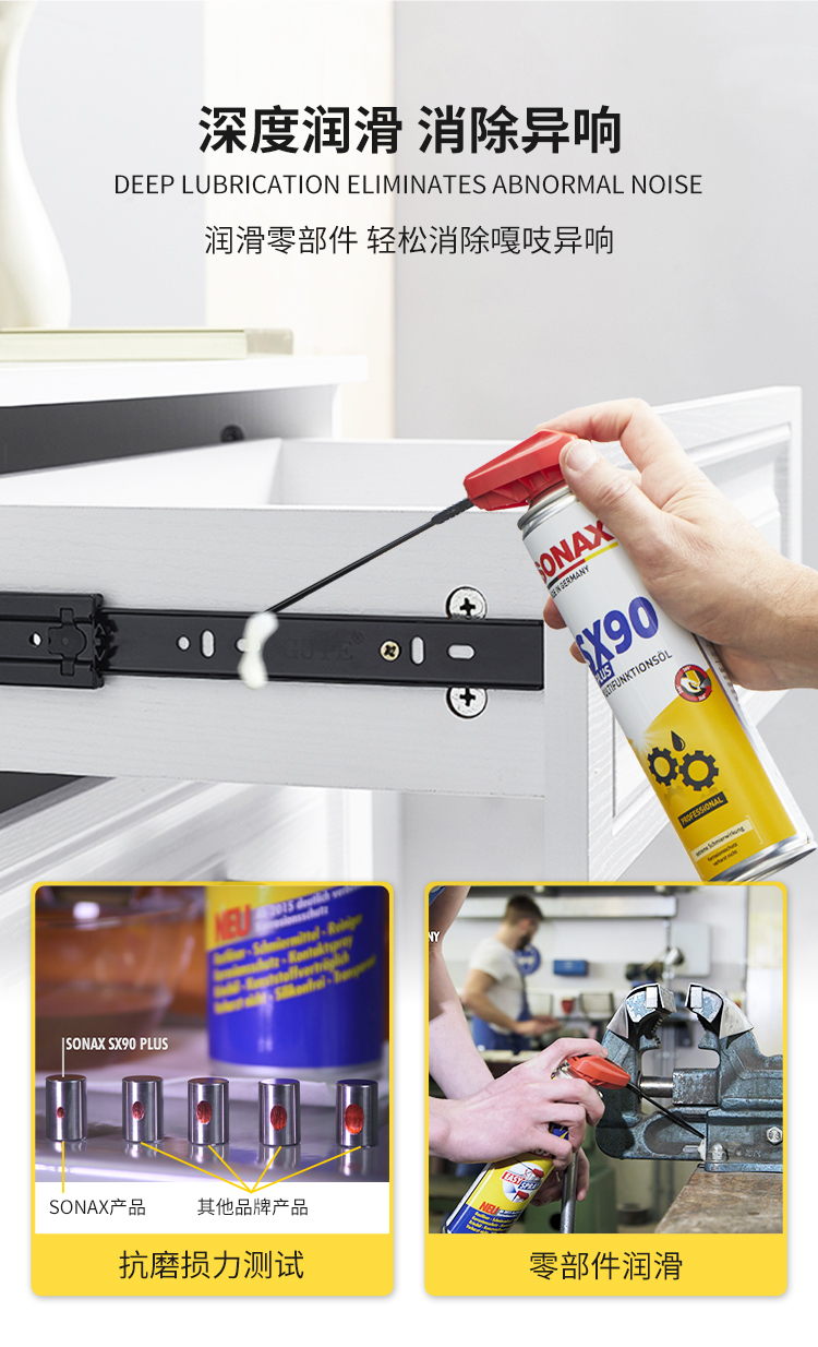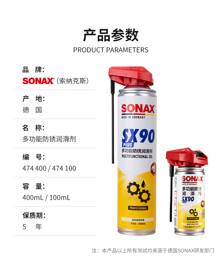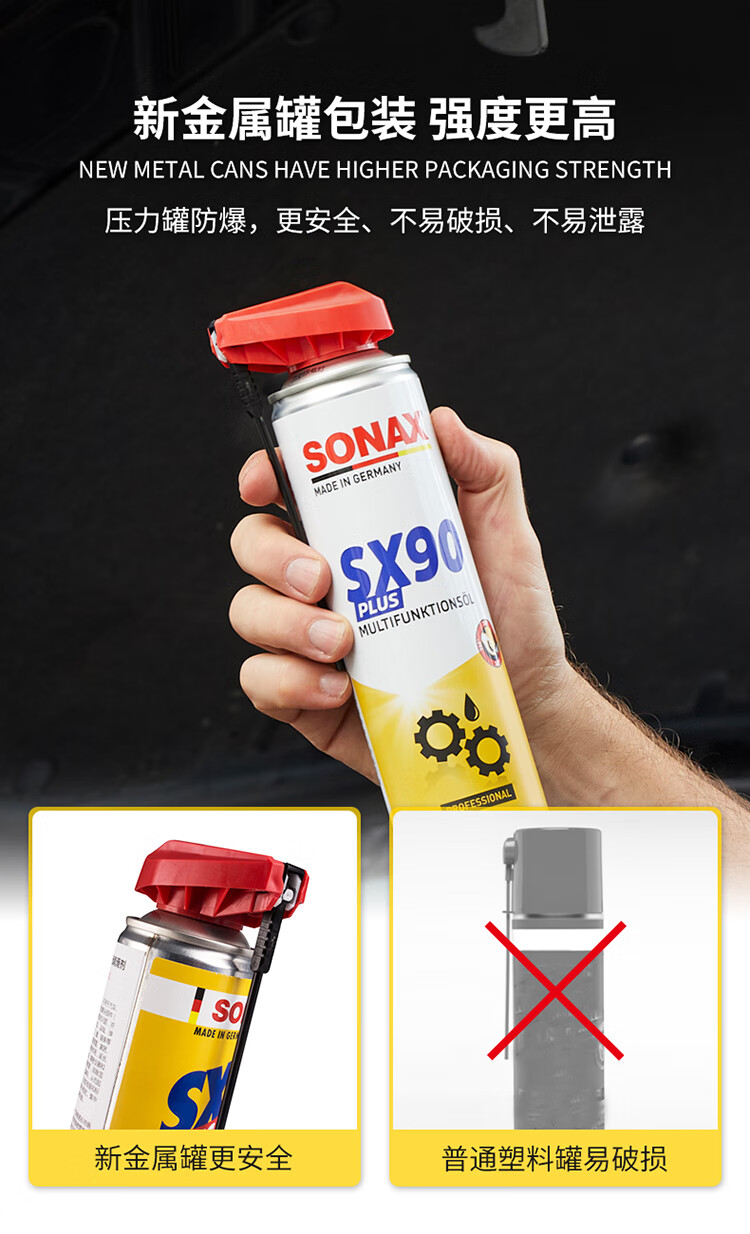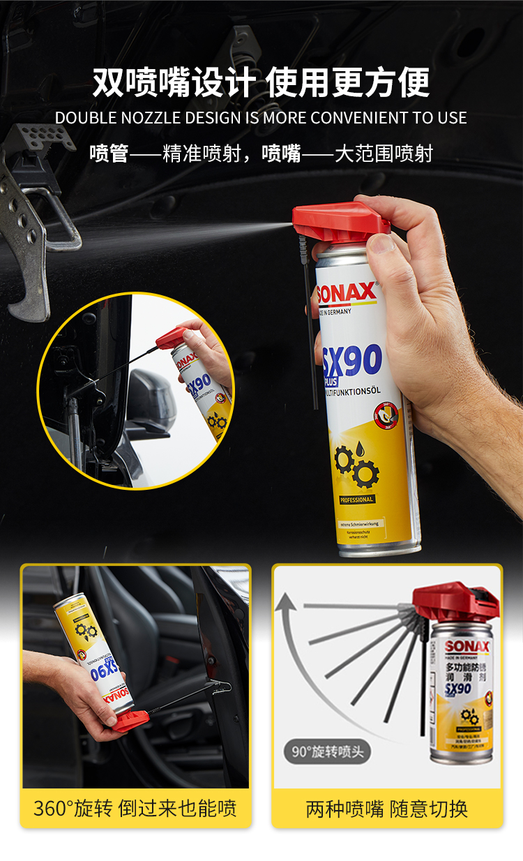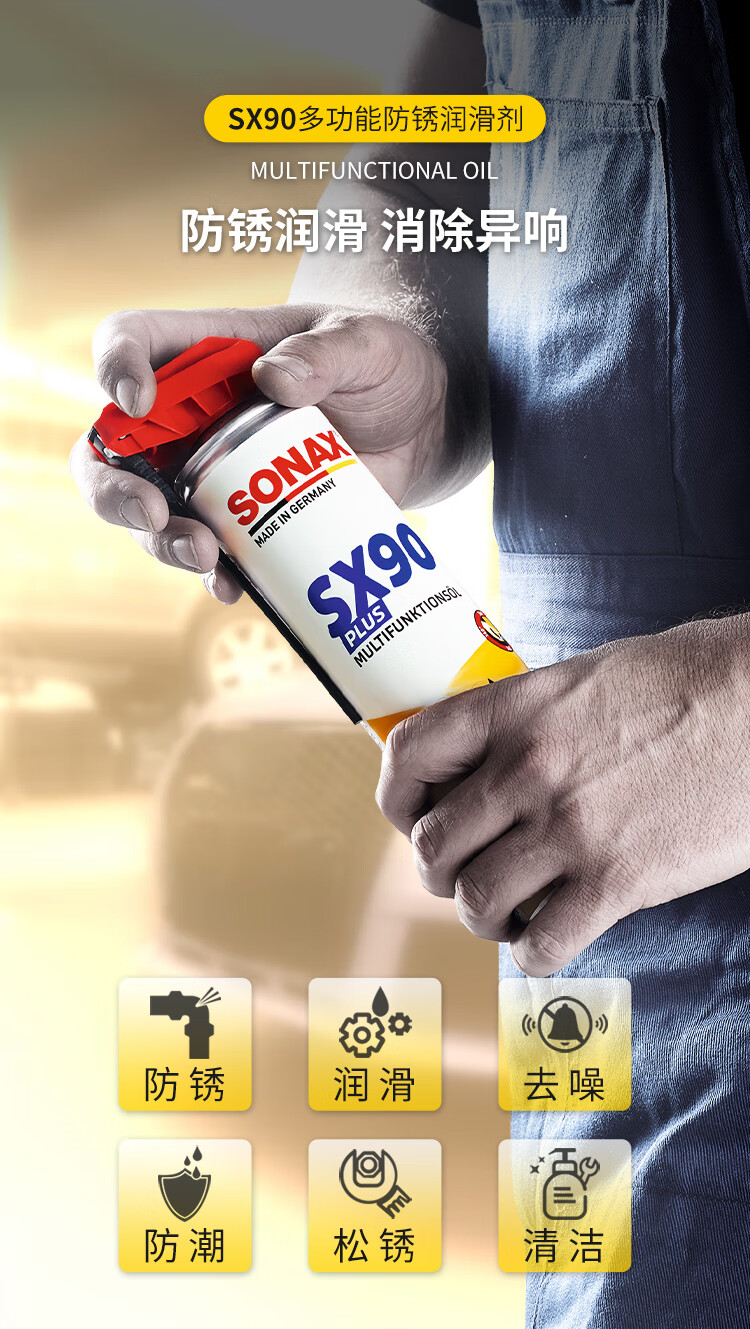 索纳克斯(SONAX)德国进口门锁润滑剂SX90防锈润滑油门窗合页链条润滑油除异响 多功能防锈润滑剂 100ml
