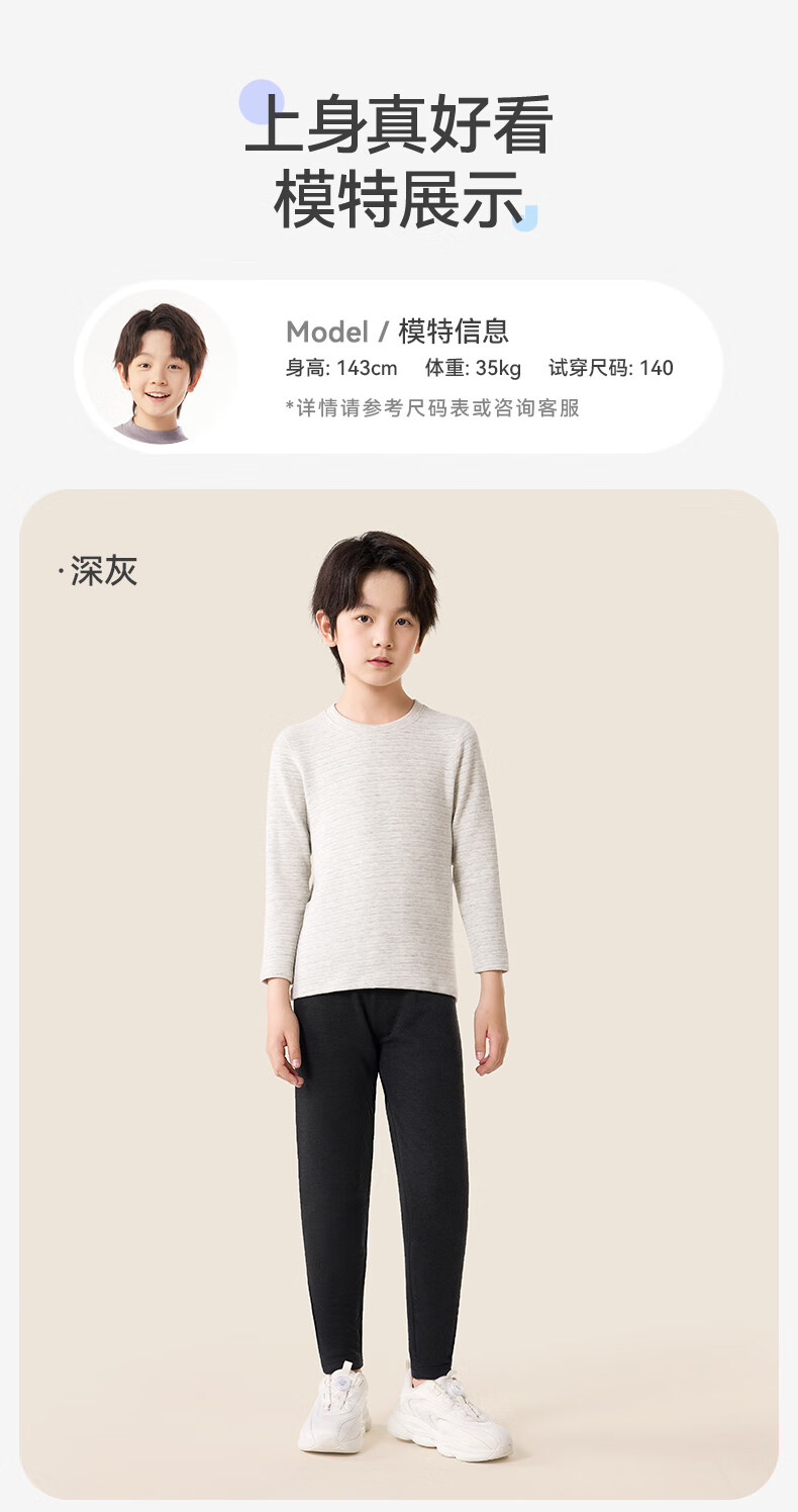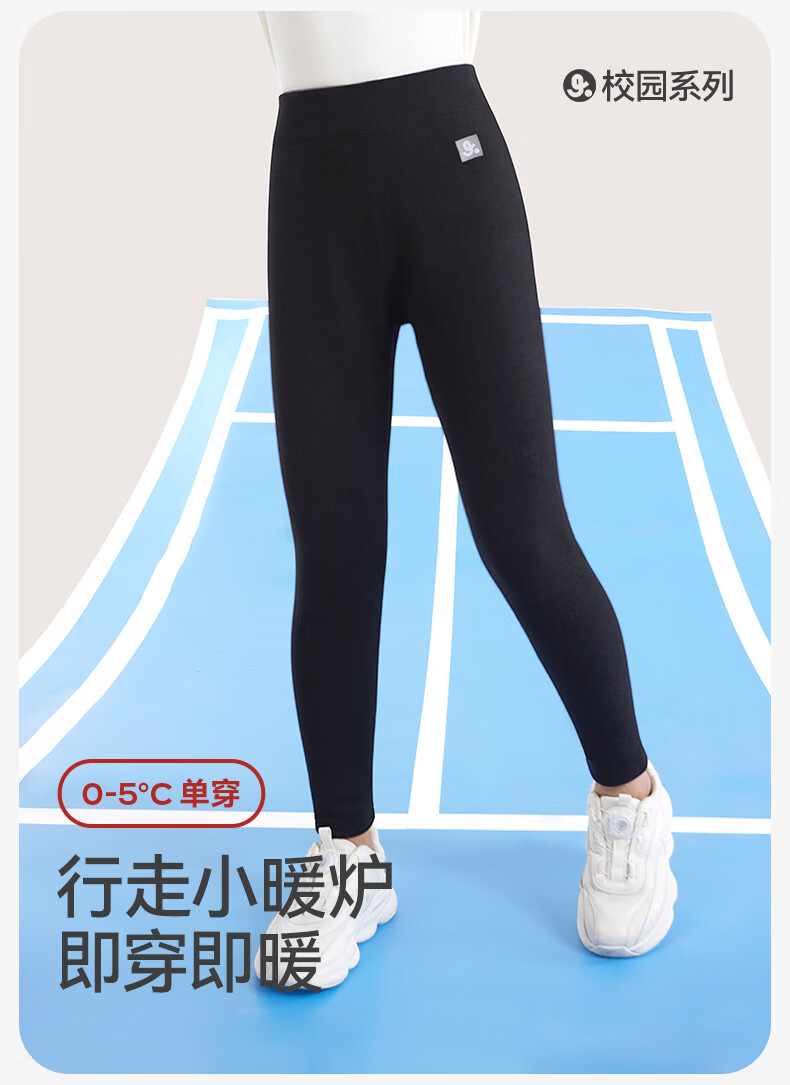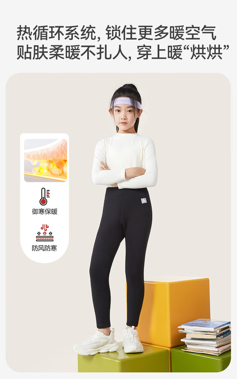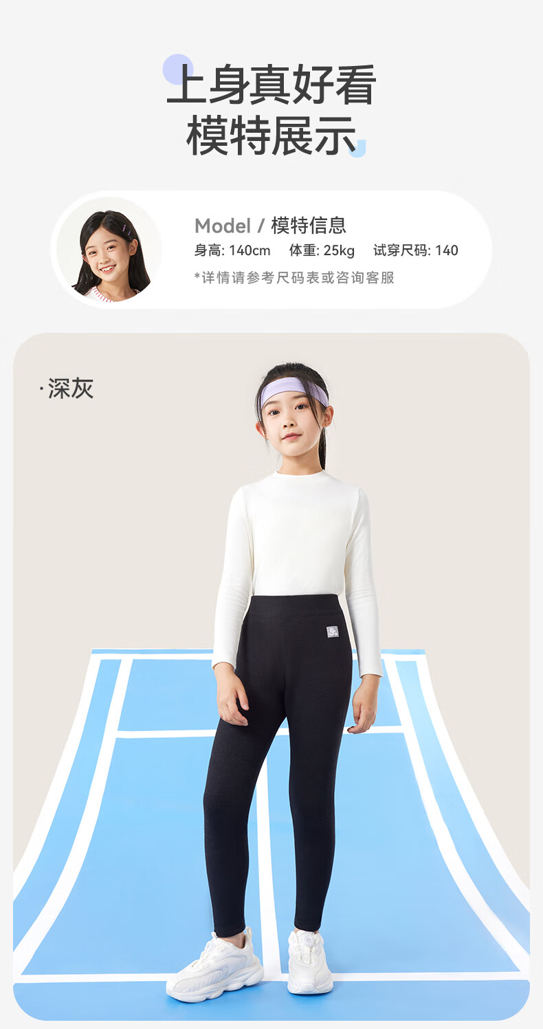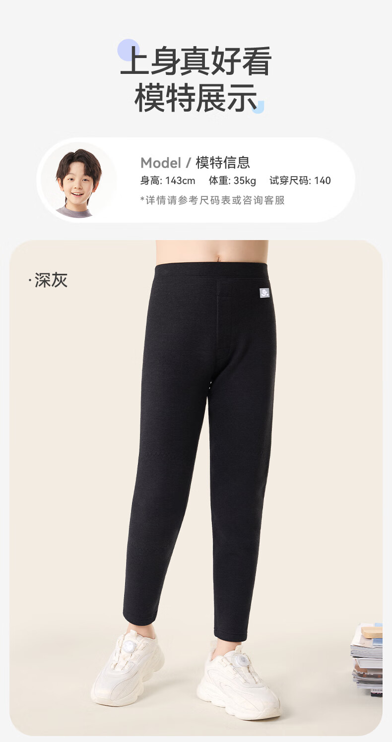 久岁伴【双层加厚】儿童保暖裤男女童秋冬季打底裤中大童青少年加绒秋裤 女童-深灰【双层加绒】 403005 170