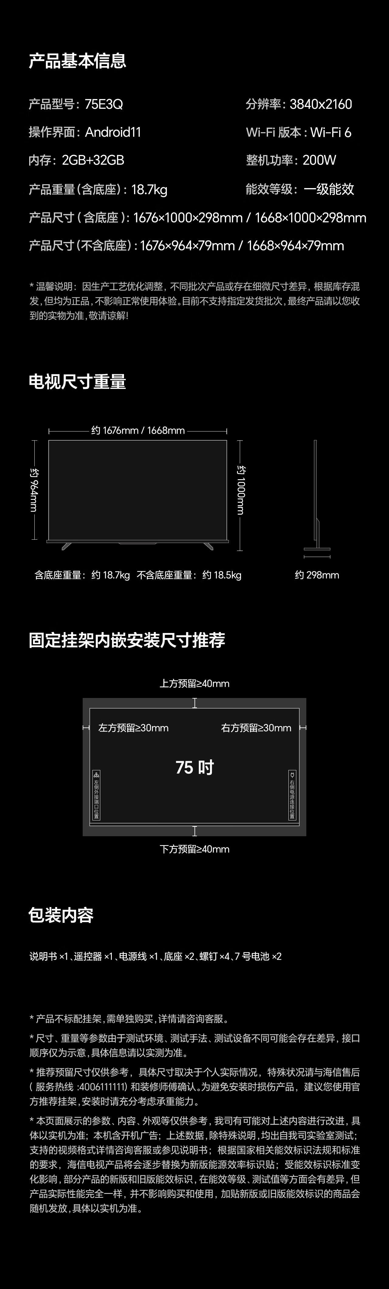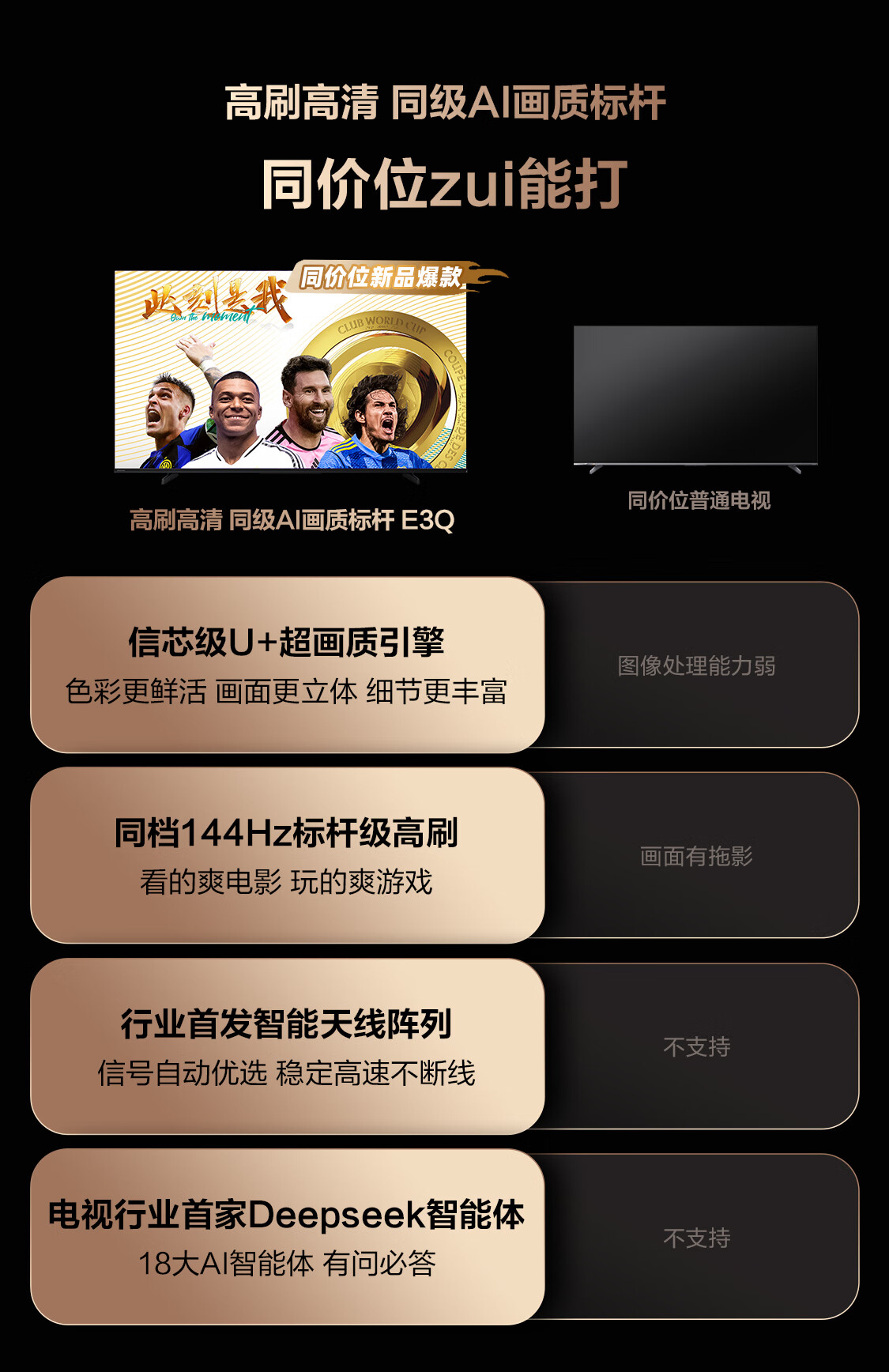 海信电视75E3Q 75英寸【送装一体-固定挂架】144Hz U+超画质引擎 AI语音 4k液晶平板国家补贴以旧换新