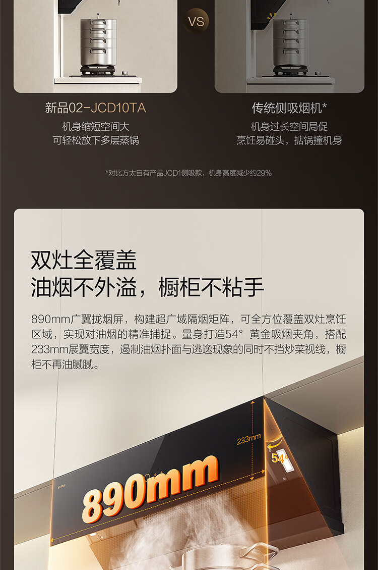 方太02-JCD10TA侧吸风魔方京东独家 24风量升级吸力强 小尺寸换装优选 以旧换新20%抽吸油烟机家用厨房