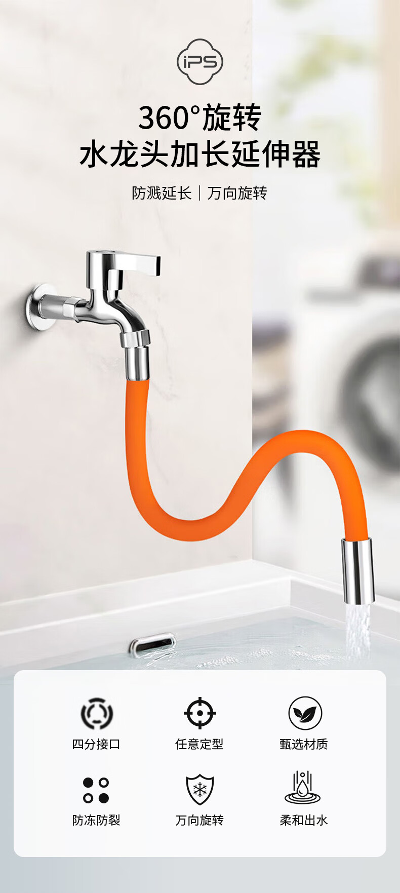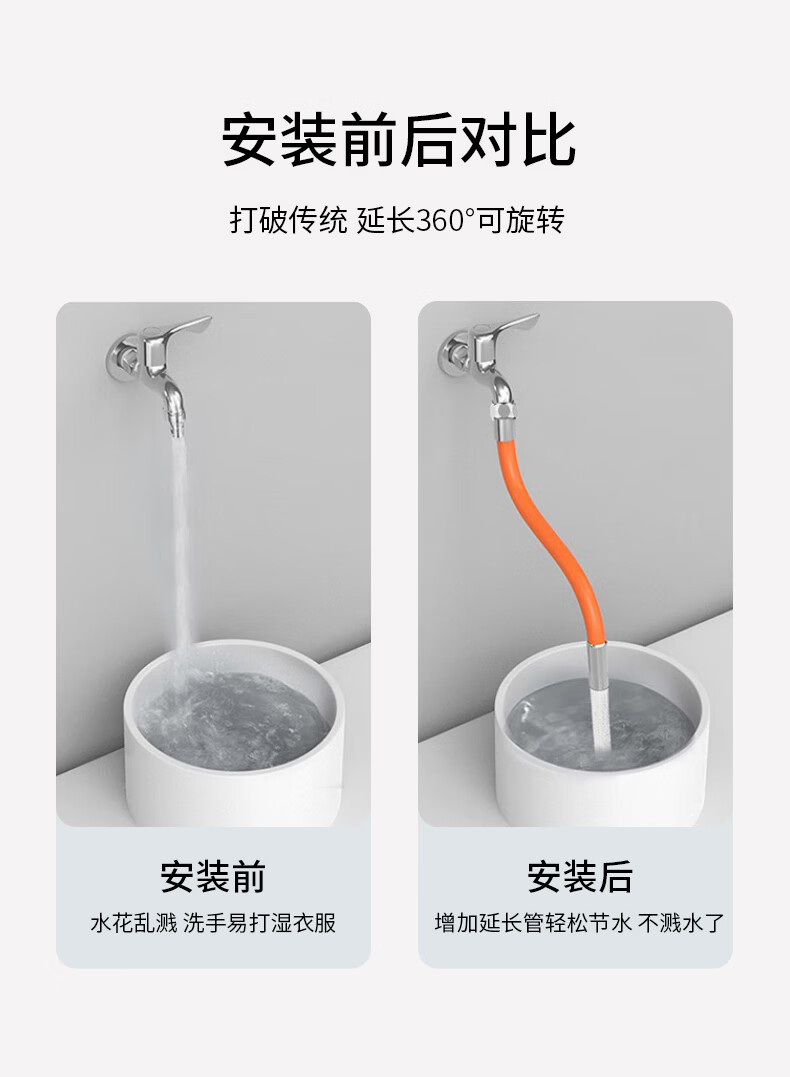葆氏水龙头延长器万向延长管防溅神器加长外接通用水管软管可旋转