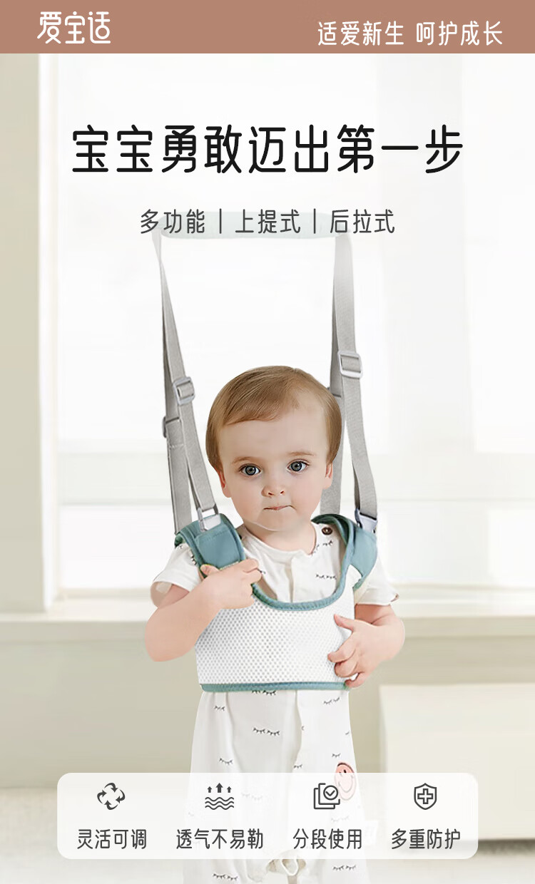 爱宝适婴儿学步带防走失牵引绳安全防勒四季通用透气款 果子绿 S360