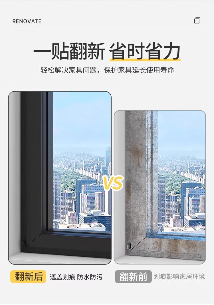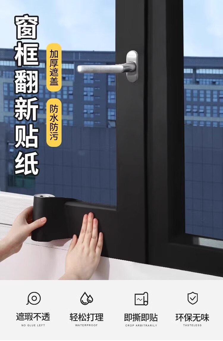 艺贝窗户包边框装饰条贴纸翻新自粘防水框套改色贴膜阳台门窗美化遮丑 哑光黑色-5米长 10厘米宽(测好宽度长度再下单)