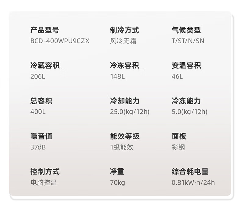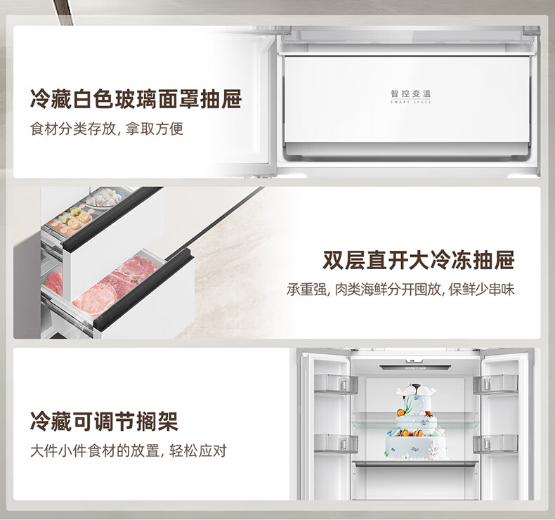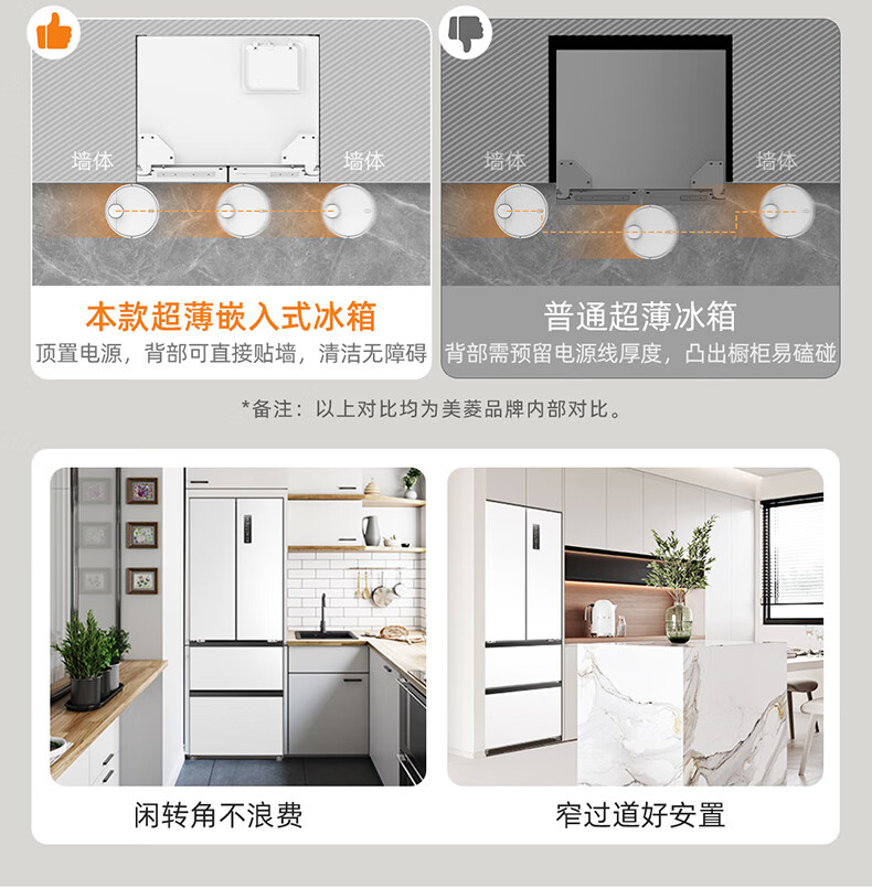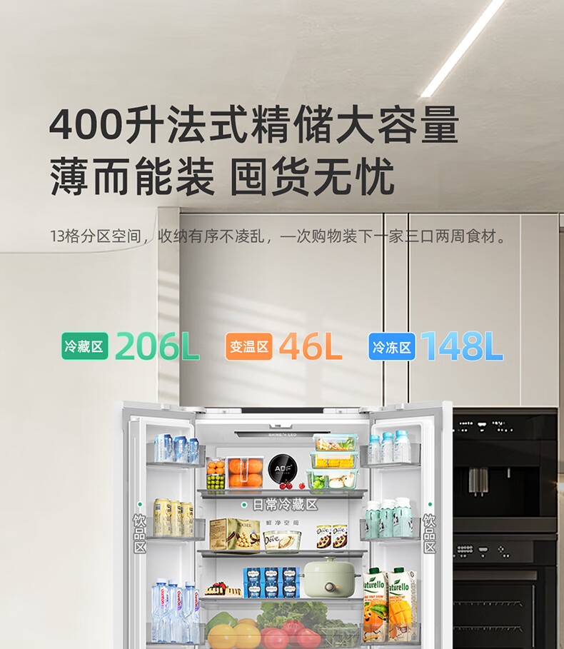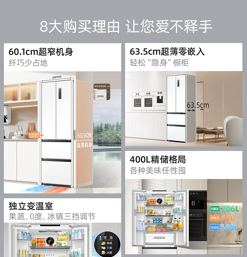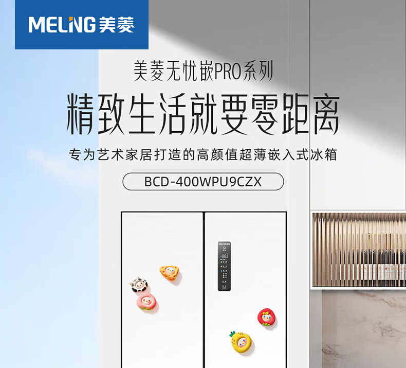 美菱(MeiLing)【无忧嵌】冰箱400升法式四门对开双开门多门家用超薄极窄零嵌入一级风冷无霜大容量补贴电冰箱 【无忧嵌】BCD-400WPU9CZX陶瓷白