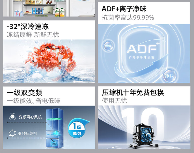 容声526升IDP双净双系统法式多门四开门电冰箱家用一级节能风冷无霜双变频BCD-526WD1MPA灰国家补贴20% 新品526灰+IDP除菌除毒净味+双系统循环