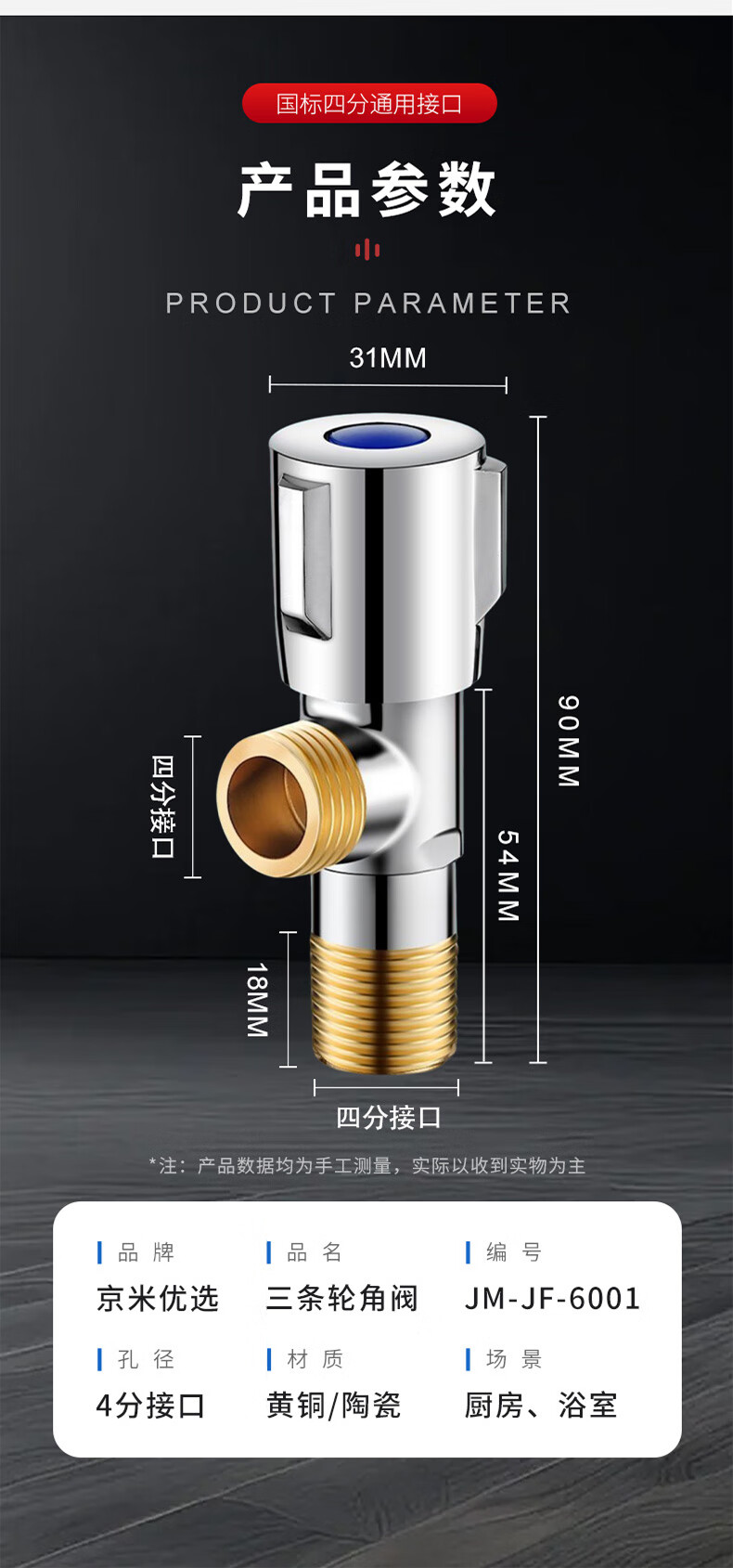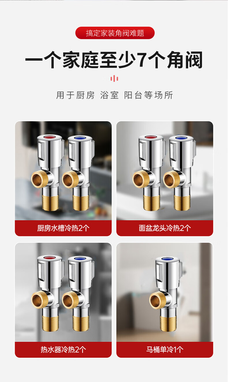 京米优选【国家补贴15%】卫生间马桶面盆洗衣机热水器水槽4分通用全铜角阀