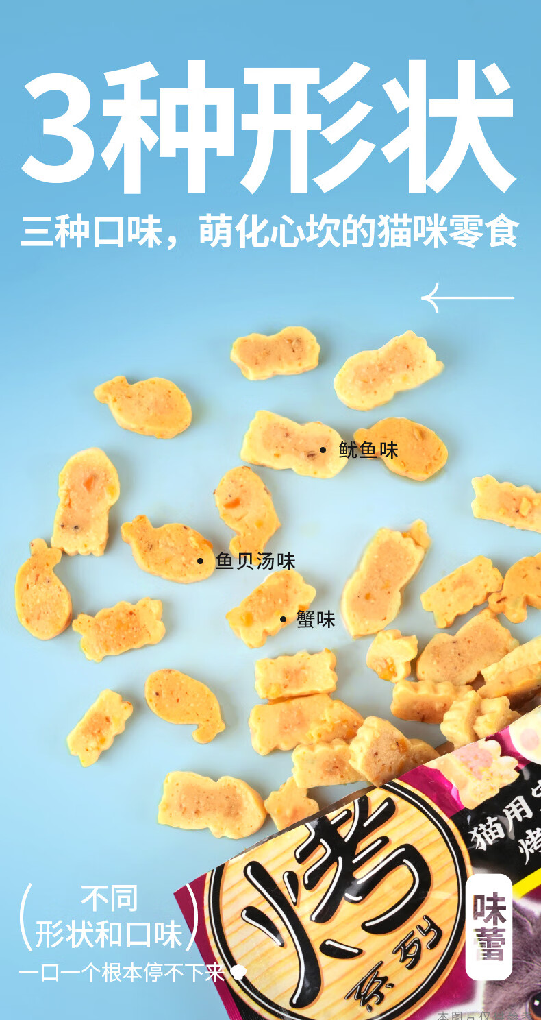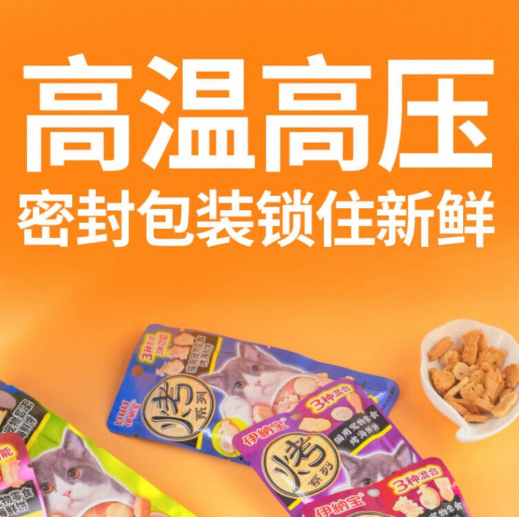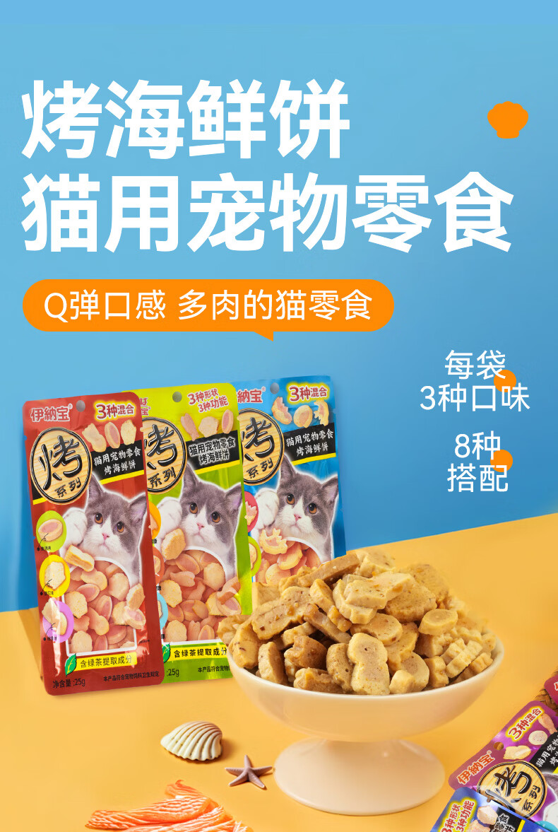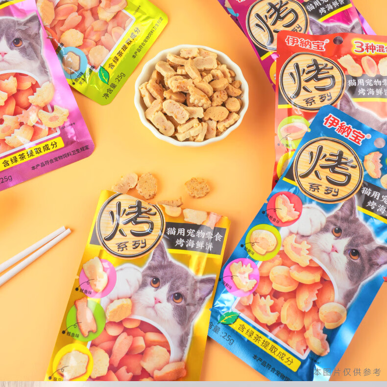 伊纳宝猫零食 烤海鲜夹心小鱼干猫饼干猫咪磨牙鸡肉粒洁齿成清仓 【烤海鲜】随机混合口味25g*8 小鱼干