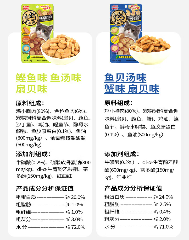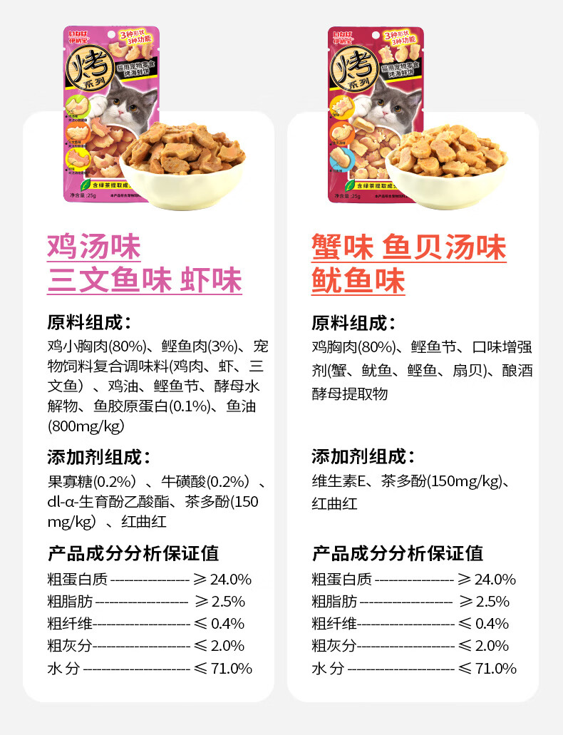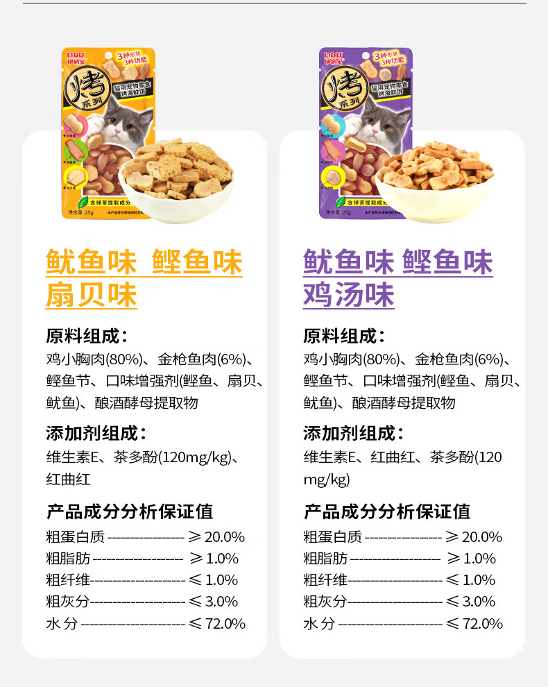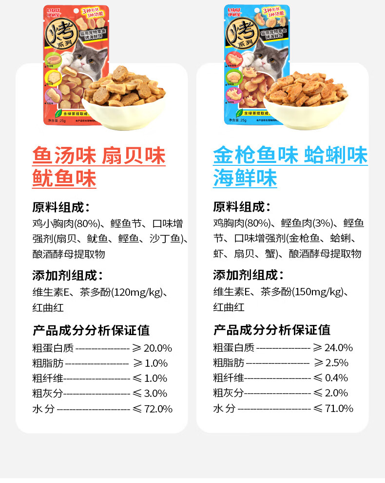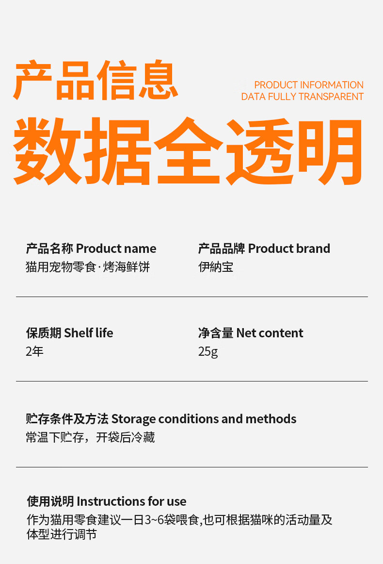 伊纳宝猫零食 烤海鲜夹心小鱼干猫饼干猫咪磨牙鸡肉粒洁齿成清仓 【烤海鲜】随机混合口味25g*8 小鱼干