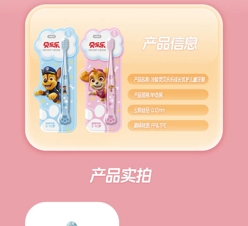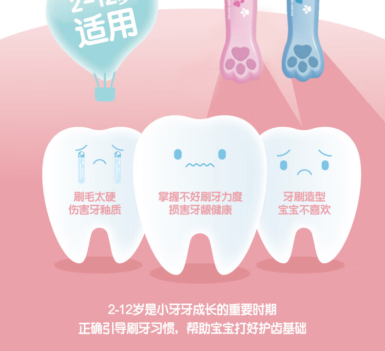 冷酸灵贝乐乐成长优护儿童牙刷2-12岁软毛2支套装 国货老牌 颜色随机