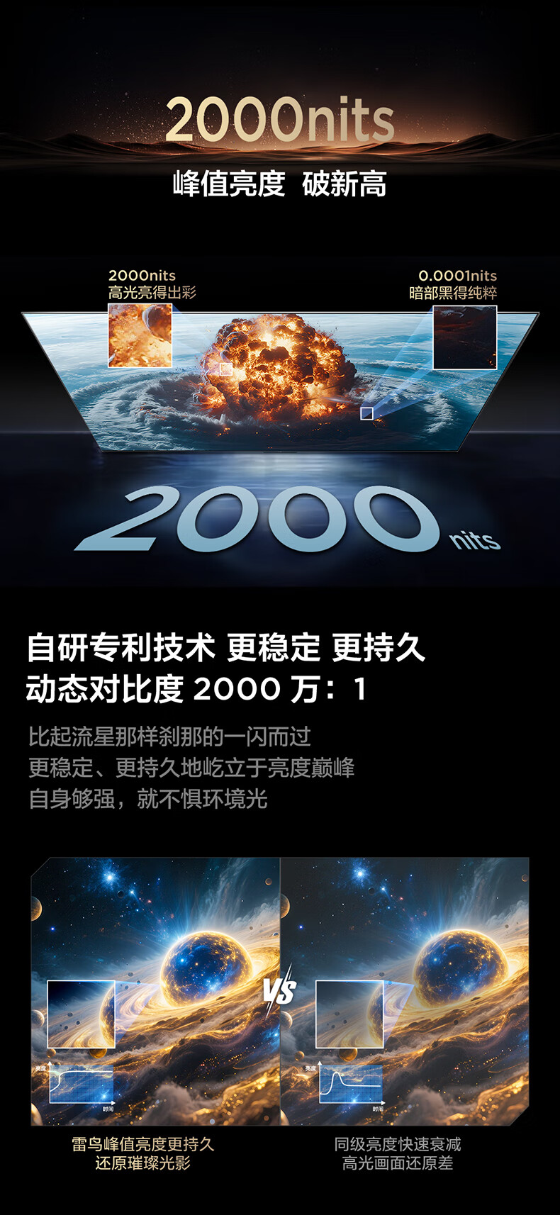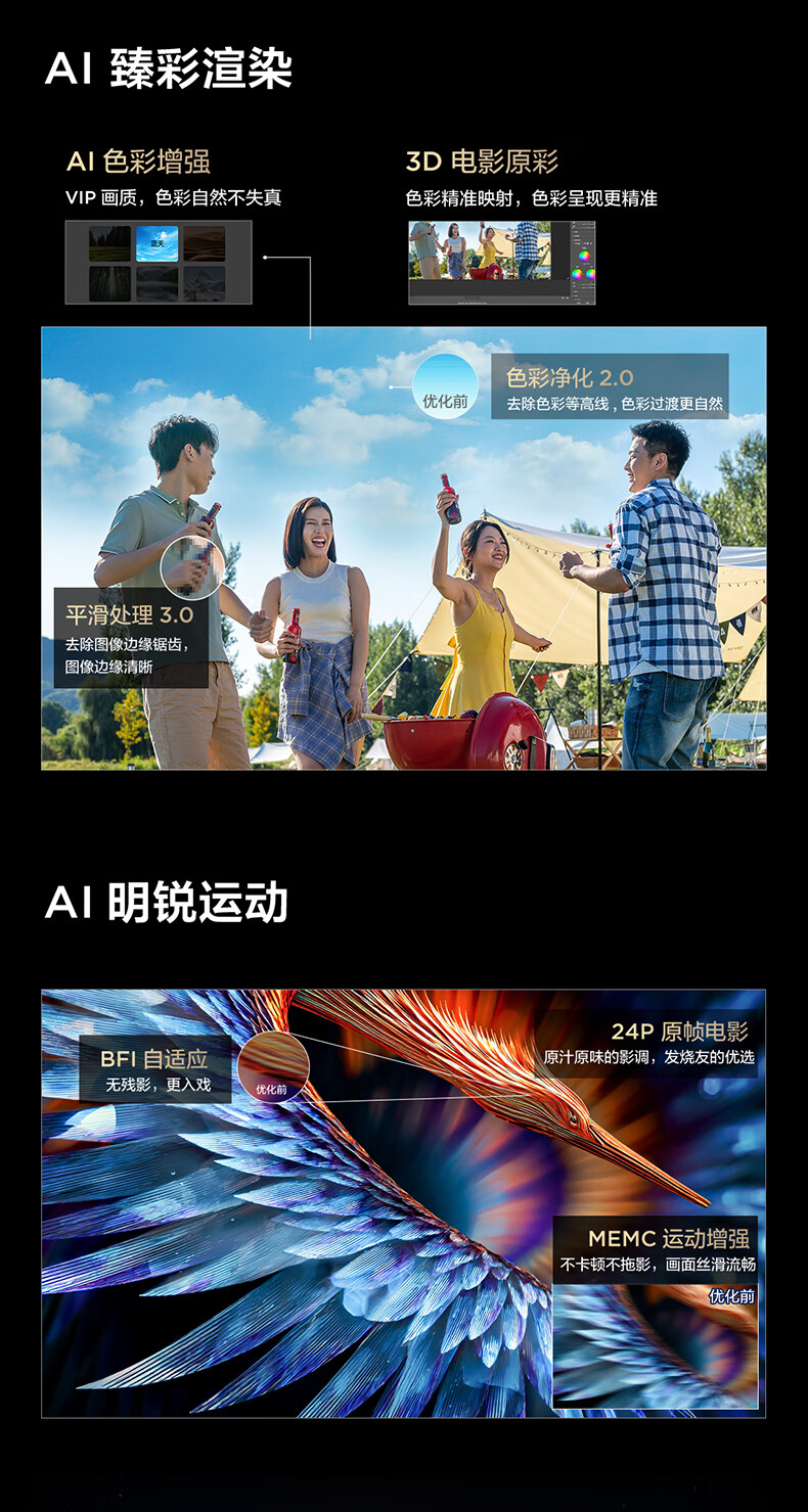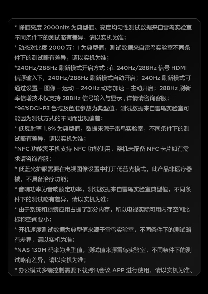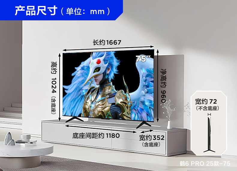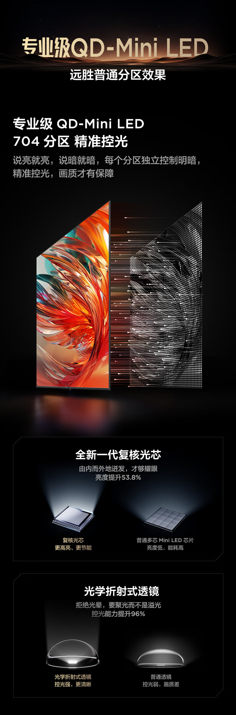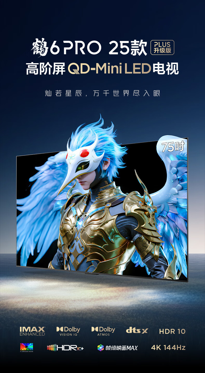 FFALCON雷鸟 【固定挂架送装一体】鹤6 PRO 25款(PLUS版) 75英寸QD-MiniLED国家补贴电视机75S595C Pro