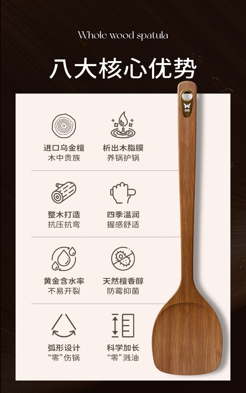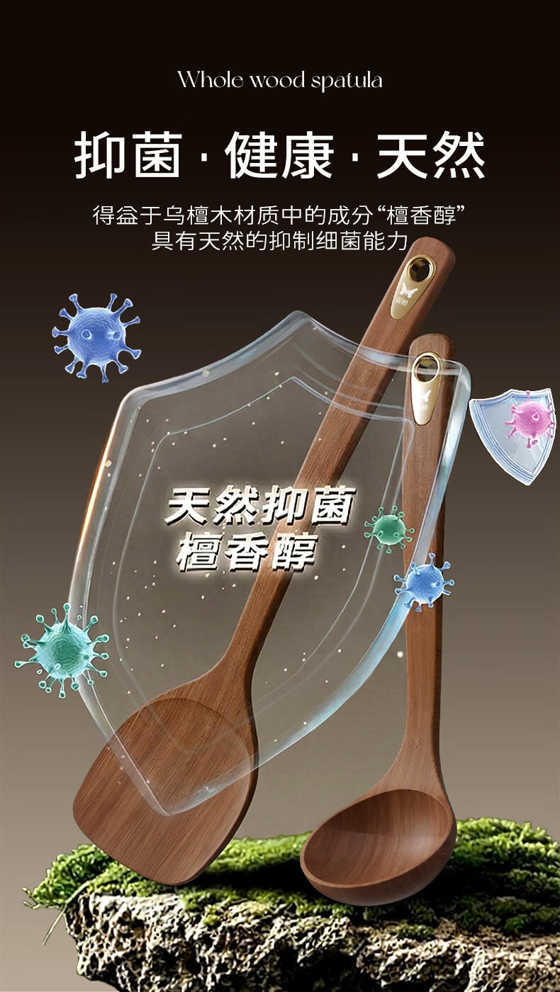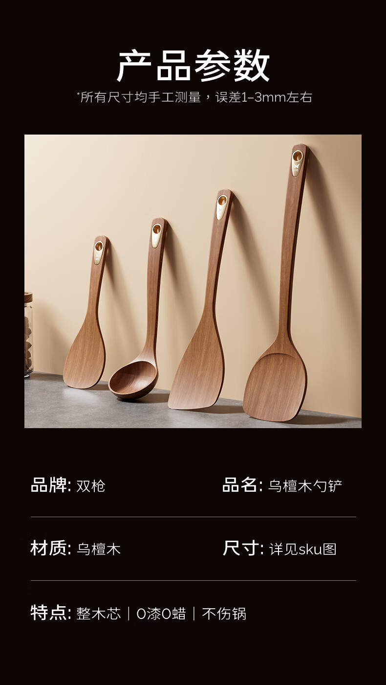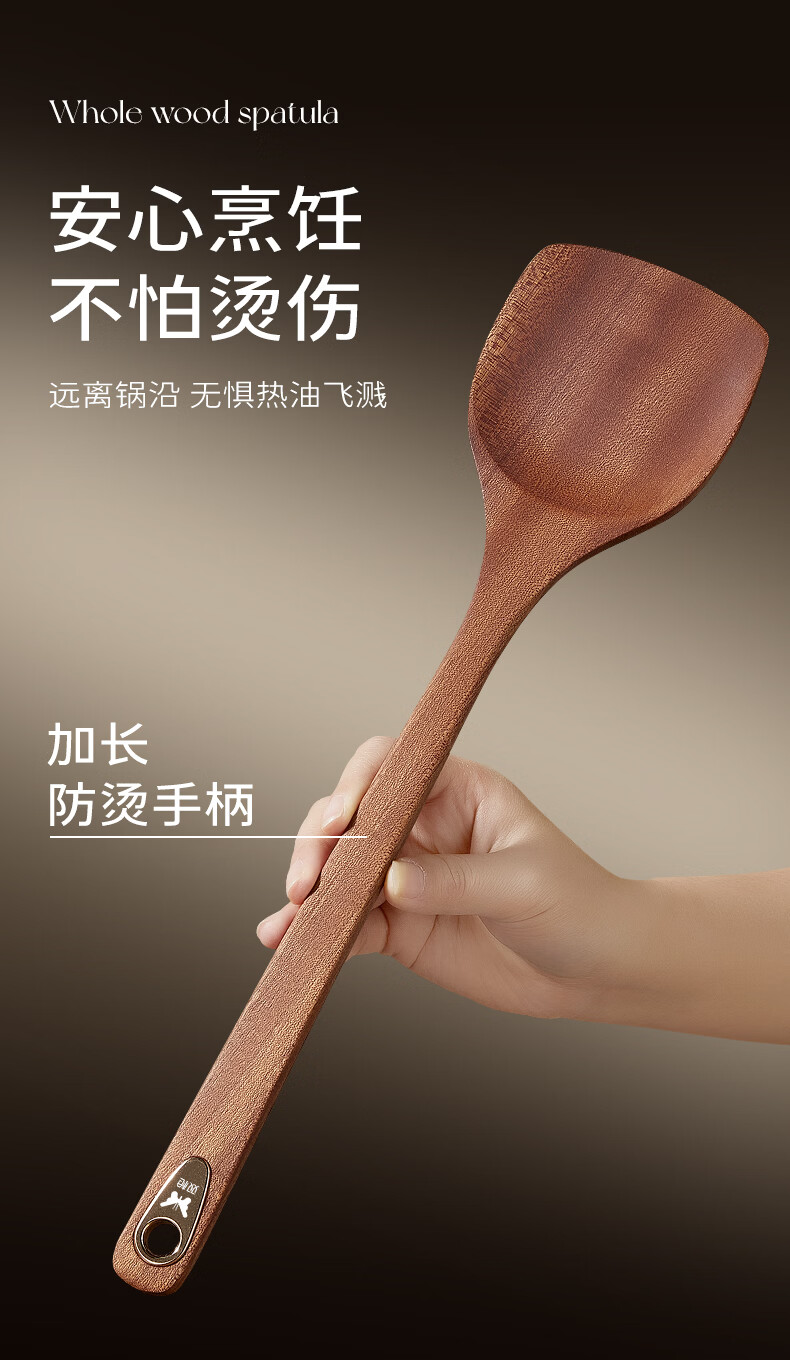 双枪乌金檀木锅铲加长防烫家用无漆无蜡炒菜木铲子