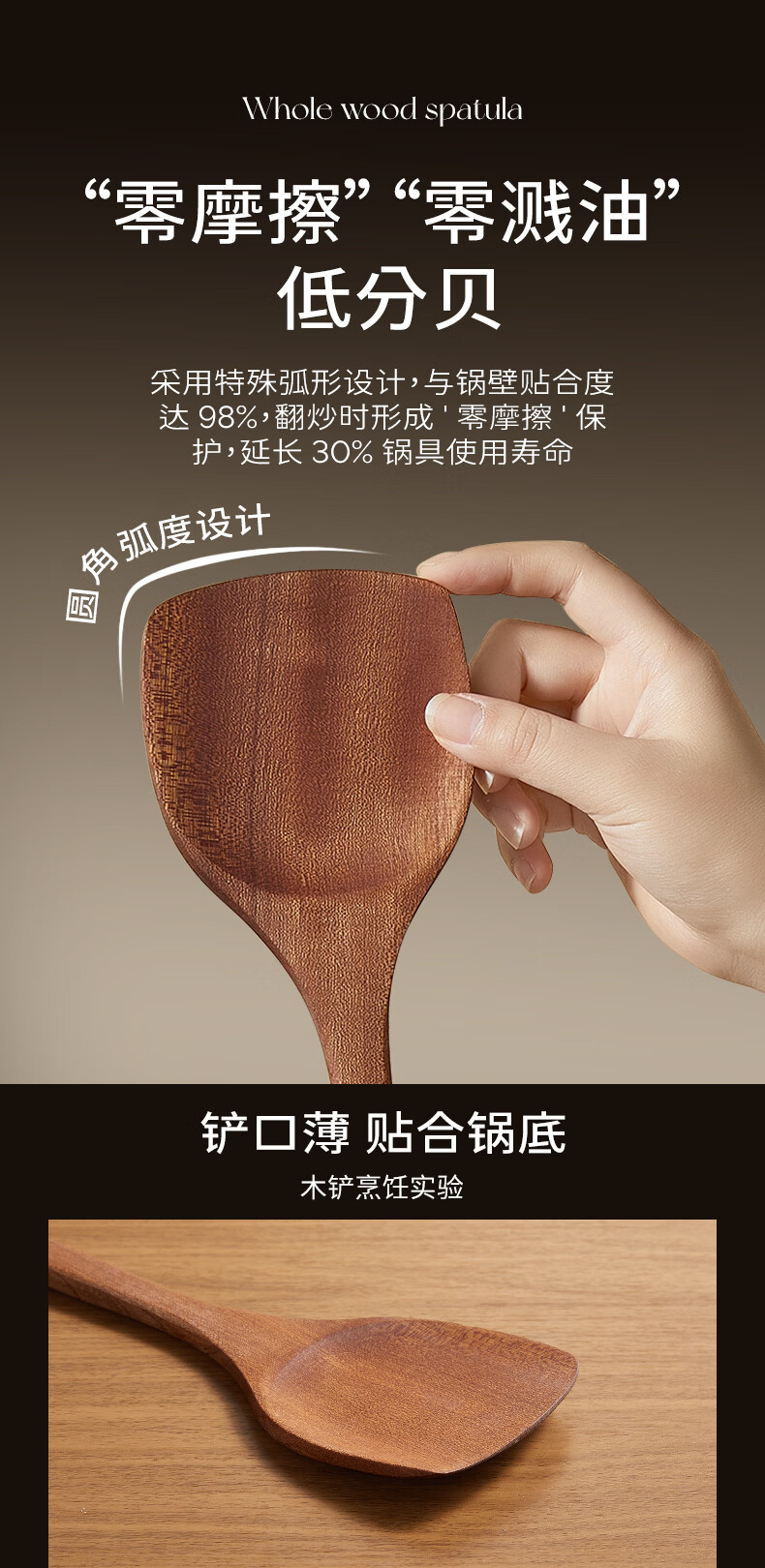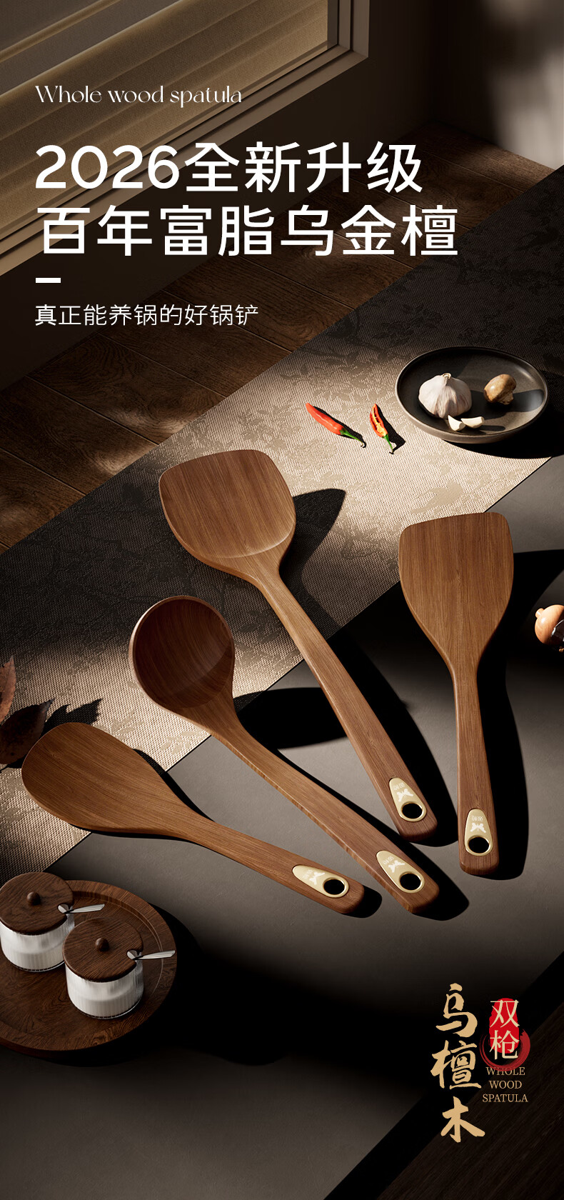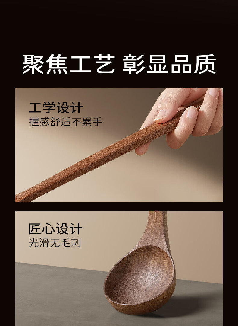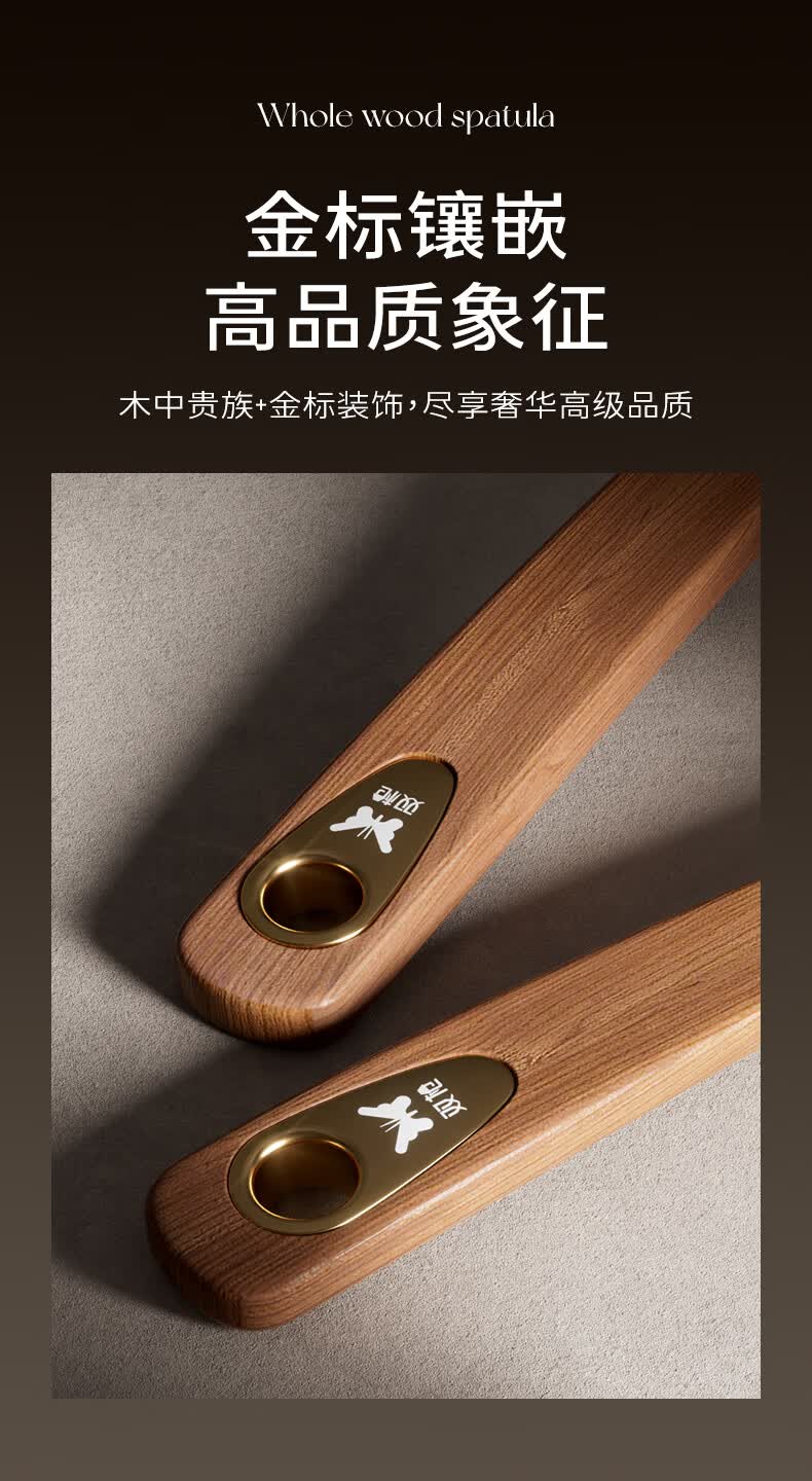 双枪乌金檀木锅铲加长防烫家用无漆无蜡炒菜木铲子
