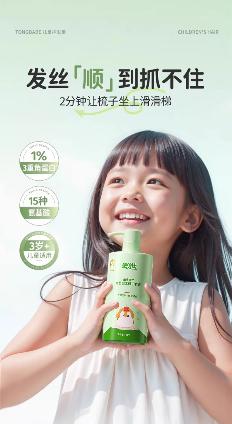 童贝比儿童护发素青少年柔顺毛躁干枯3-6-12岁女孩专用角蛋白润发乳正品 【1瓶】维生素C角蛋白柔顺护发素600ml