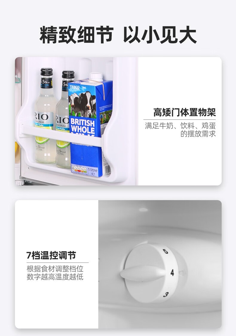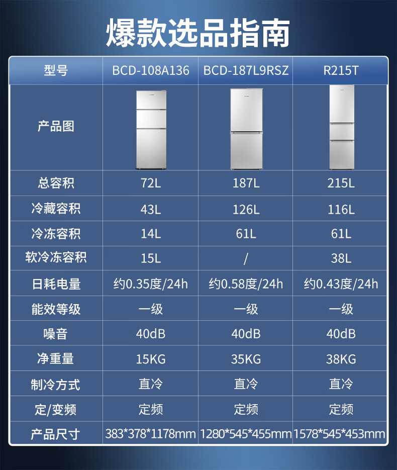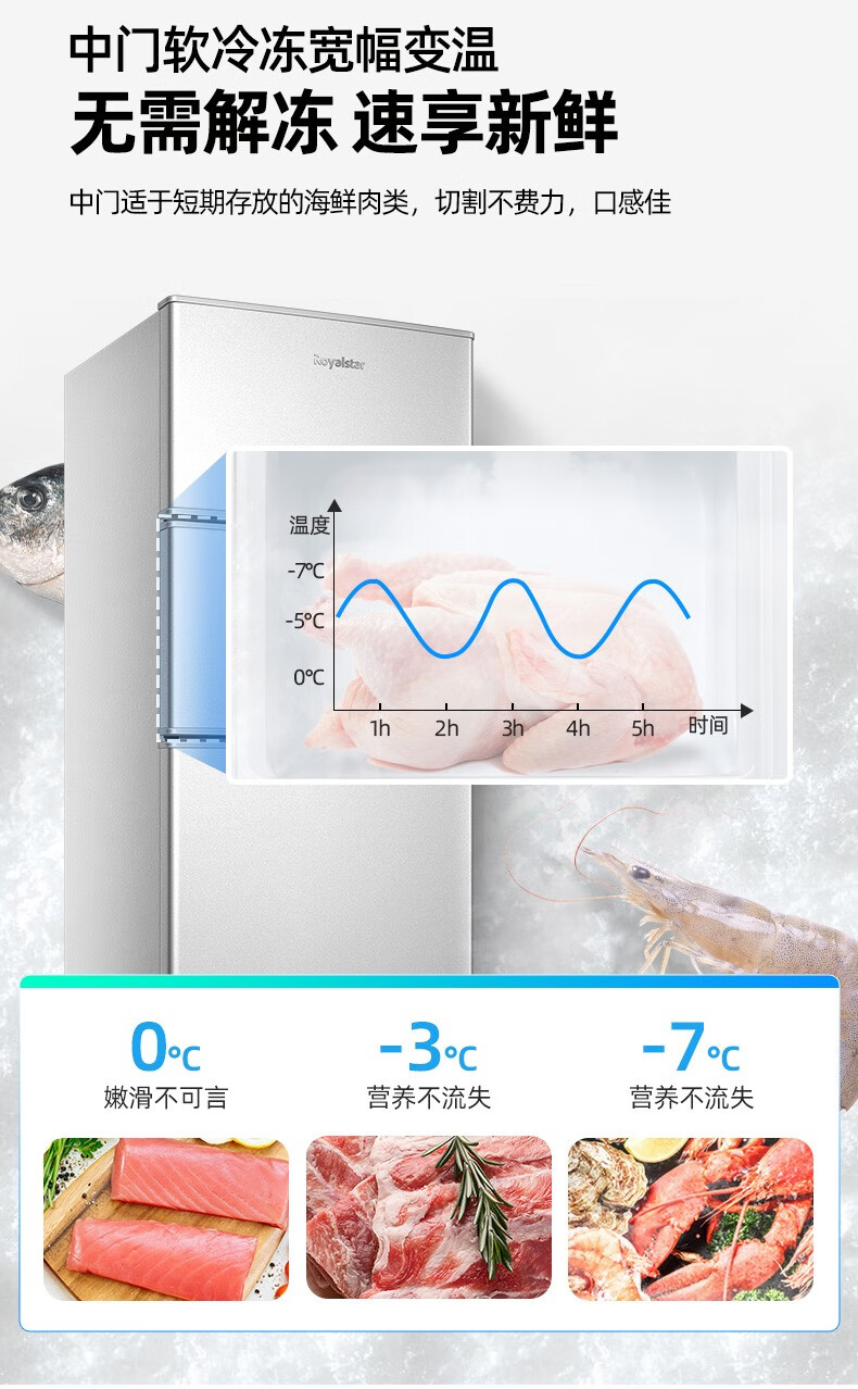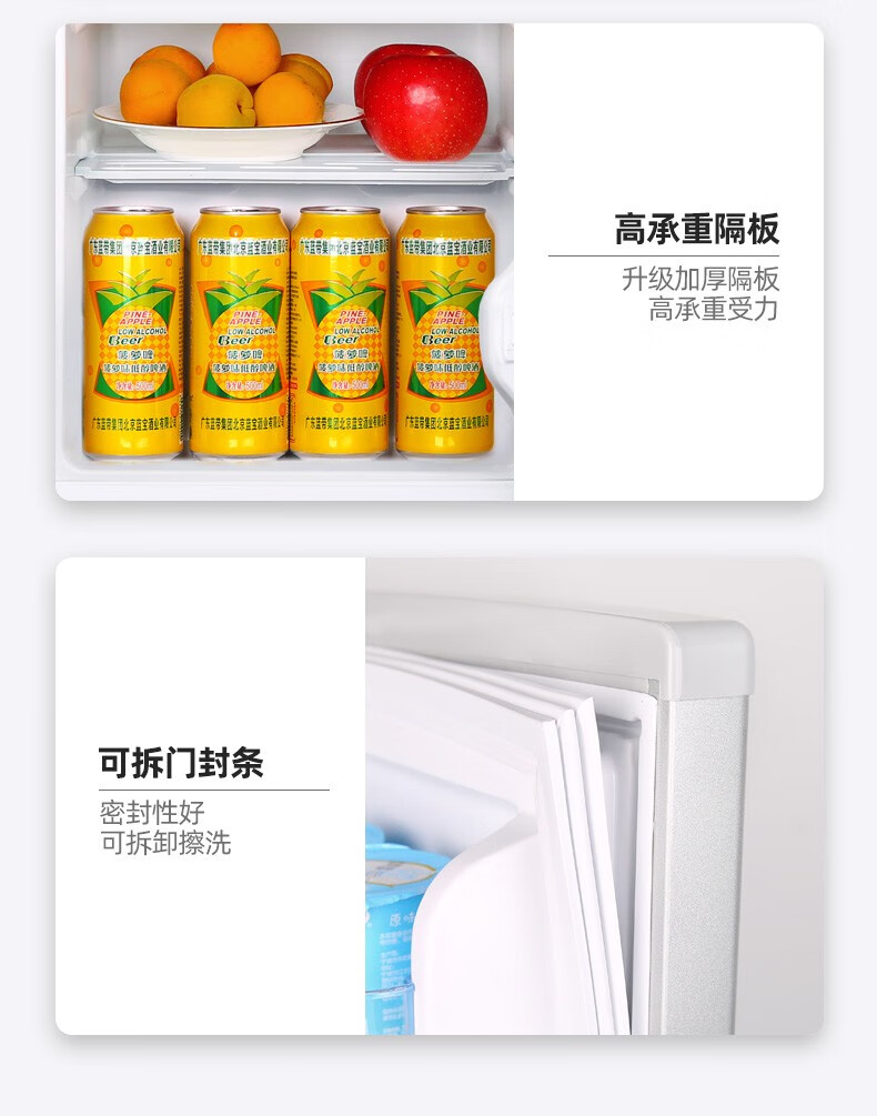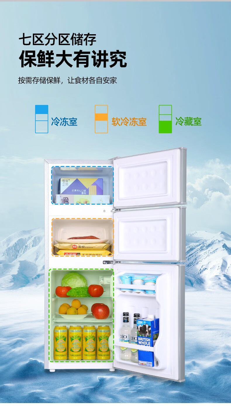 荣事达(Royalstar)【国家补贴20%】215升三门冰箱家用小型大容量三开门 节能低噪租房中门软冷冻超薄低音保鲜电冰箱 72L【一级能效】三天一度电 银色