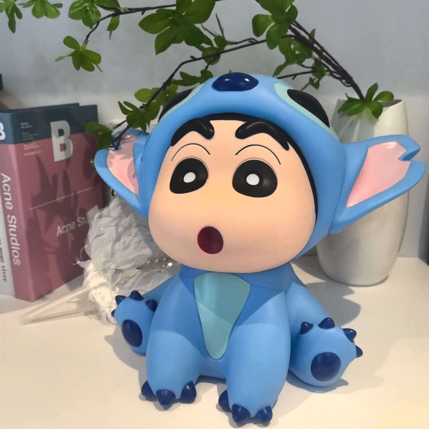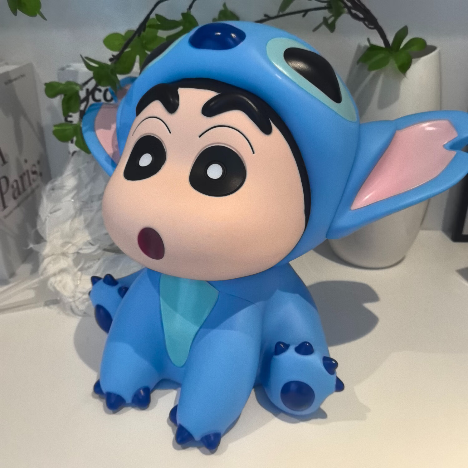 蜡笔小新正品潮玩具手办公仔头转动桌面摆件动漫周边男女生日礼物 蓝色小新40CM【赠帽子领带挎包】