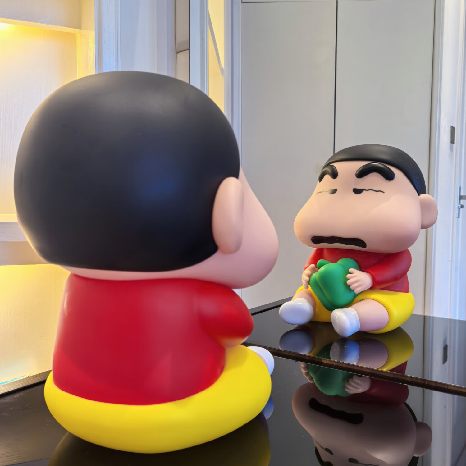 蜡笔小新正品潮玩具手办公仔头转动桌面摆件动漫周边男女生日礼物 洗澡小新45CM顶配【送浴帽内裤】